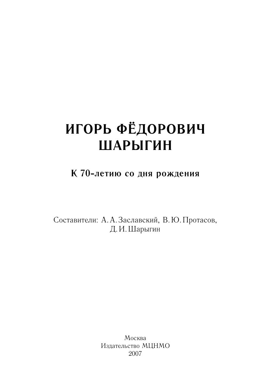 Игорь Федорович Шарыгин. К 70-летию со дня рождения