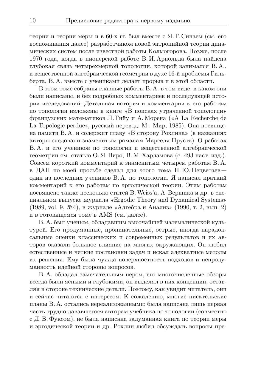 Книга включает наиболее важные математические работы замечательного российского математика В.А.Рохлина (1919–1984), внесшего крупный в клад в топологию, теорию меры, теорию динамических систем и алгебраическую геометрию. Она может быть полезной аспирантам и специалистам по топологии, функциональному анализу, теории динамических систем, а также тем, кто интересуется историей отечественной науки. В книге приводятся также воспоминания известных ученых о Рохлине, материалы к его биографии и комментарии к научным работам.Настоящее издание выпускается к 90-летию со дня рождения В.А.Рохлина. По сравнению с первым изданием в него включена еще одна работа В.А.Рохлина, добавлен ряд биографических материалов и расширены некоторые комментарии.Первое издание книги вышло в 1999 г.