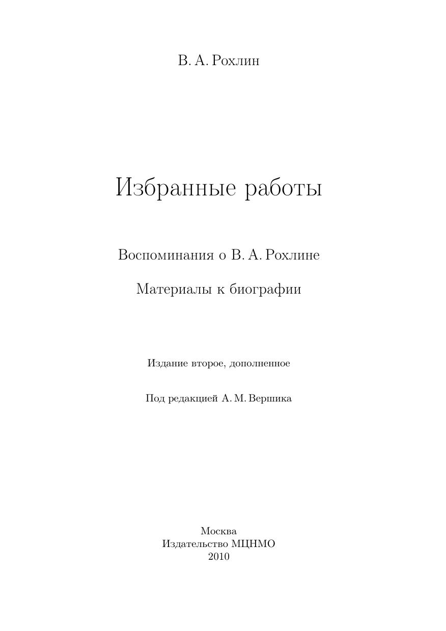 Избранные работы. Воспоминания о В.А.Рохлине. Материалы к биографии
