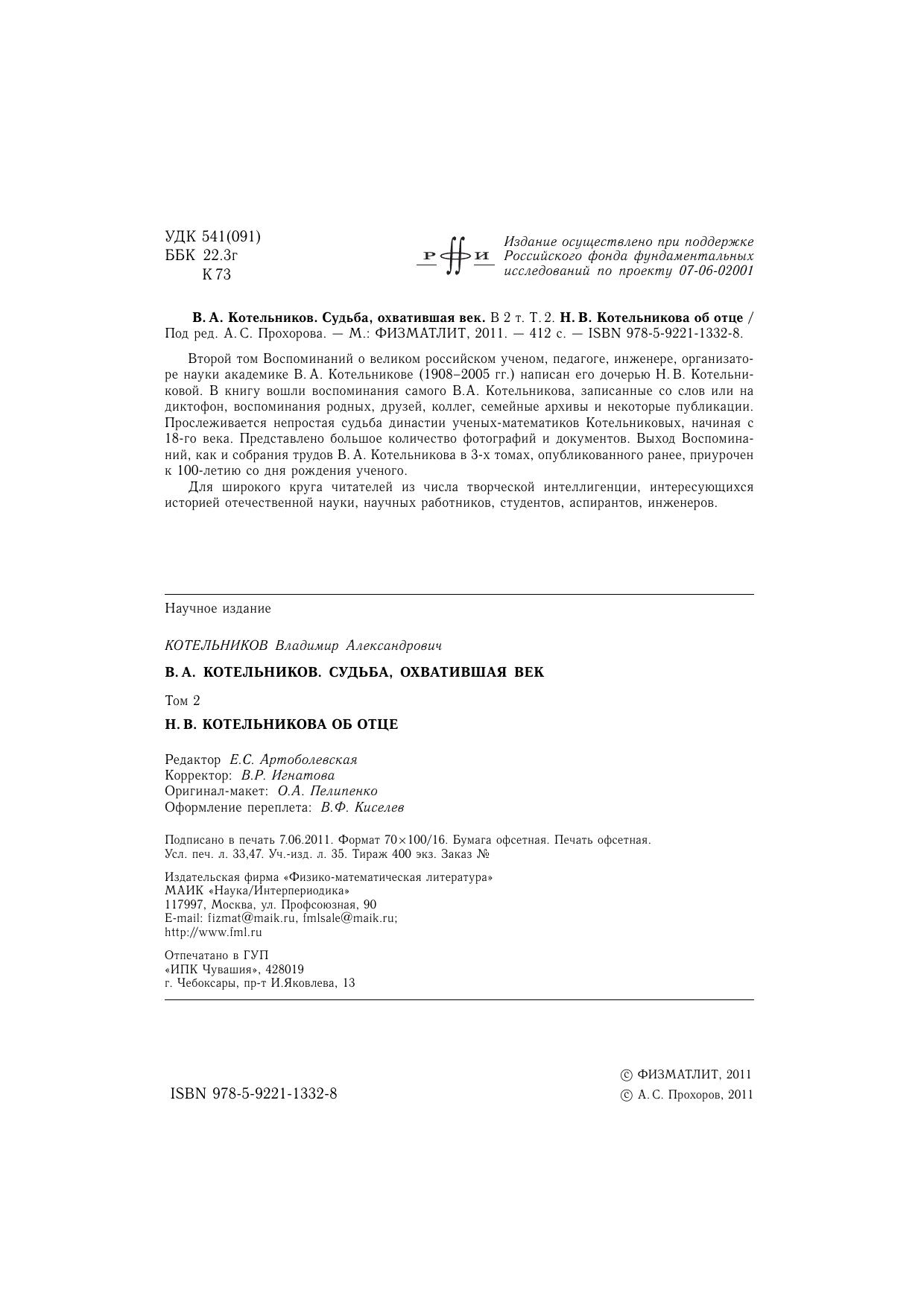 В.А. Котельников. Судьба, охватившая век. В 2 т. Т.2. Н.В. Котельникова об отце