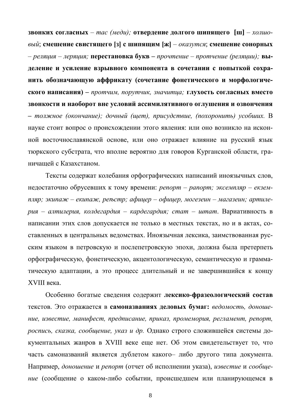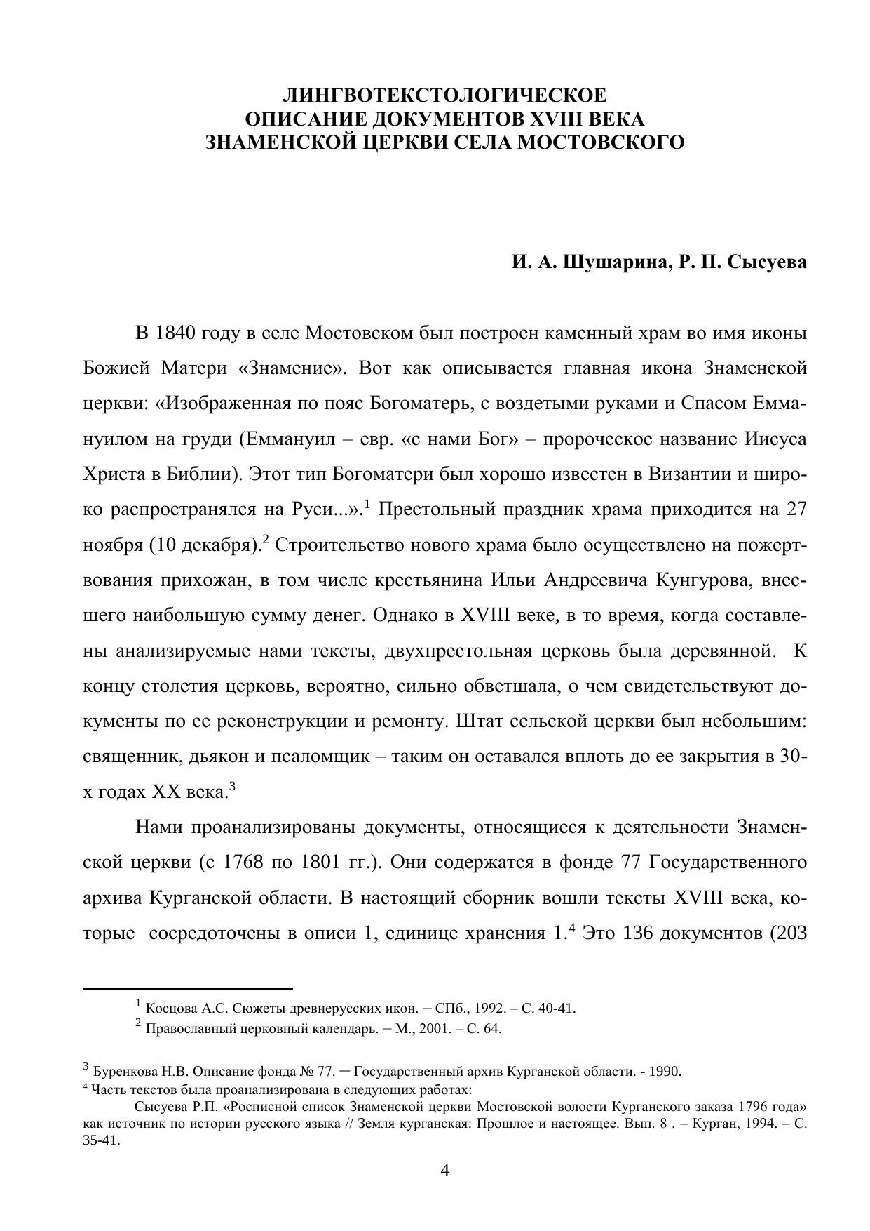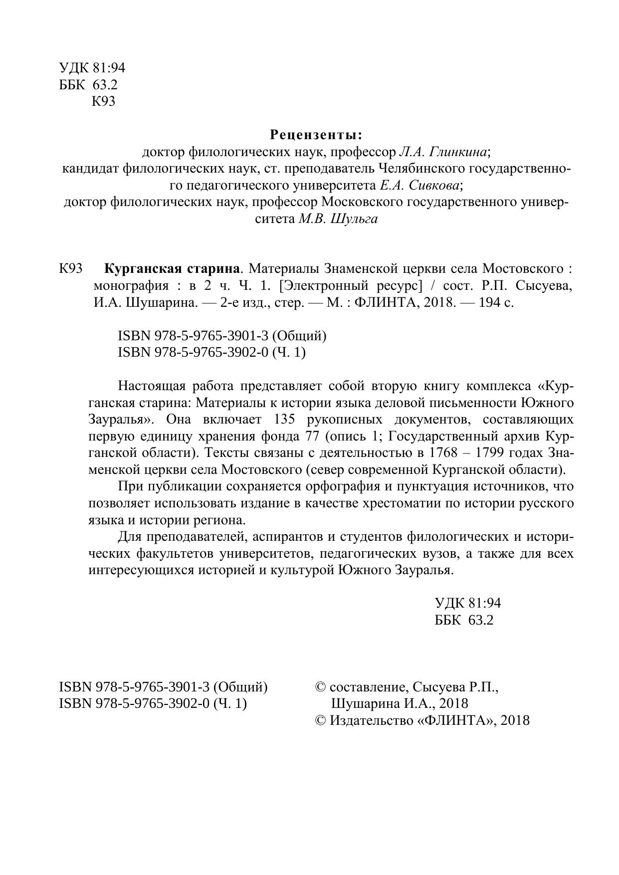 Настоящая работа представляет собой вторую книгу комплекса «Курганская старина: Материалы к истории языка деловой письменности Южного Зауралья». Она включает 135 рукописных документов, составляющих первую единицу хранения фонда 77 (опись 1; Государственный архив Курганской области). Тексты связаны с деятельностью в 1768 – 1799 годах Знаменской церкви села Мостовского (север современной Курганской области). При публикации сохраняется орфография и пунктуация источников, что позволяет использовать издание в качестве хрестоматии по истории русского языка и истории региона. Для преподавателей, аспирантов и студентов филологических и исторических факультетов университетов, педагогических вузов, а также для всех интересующихся историей и культурой Южного Зауралья.