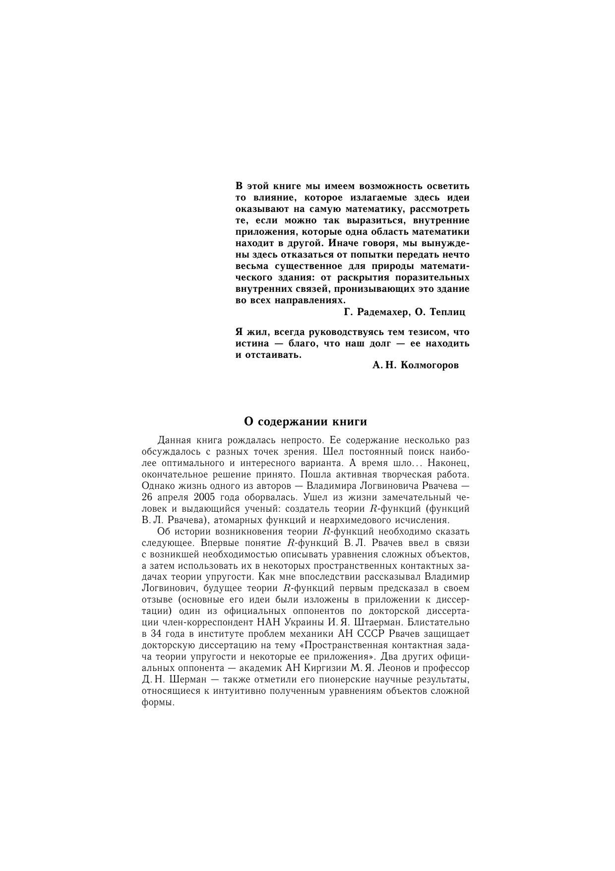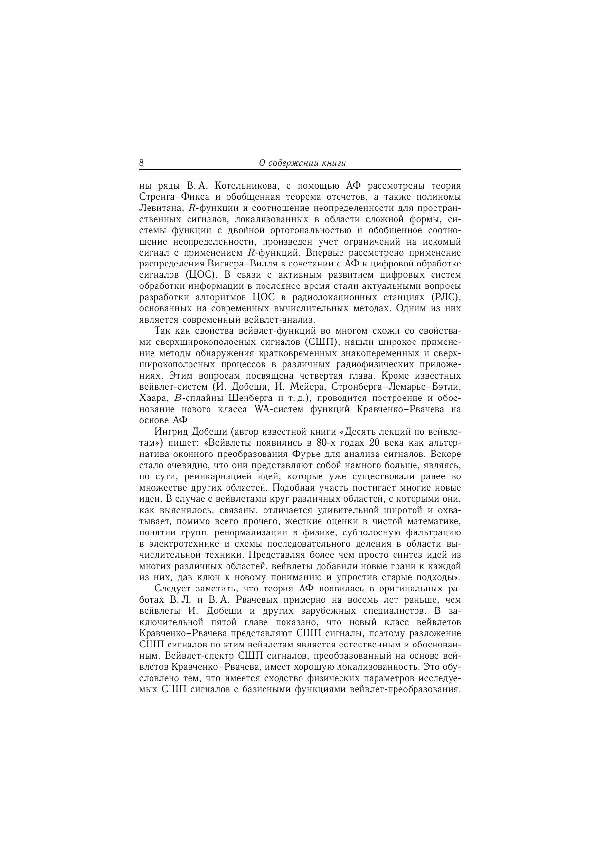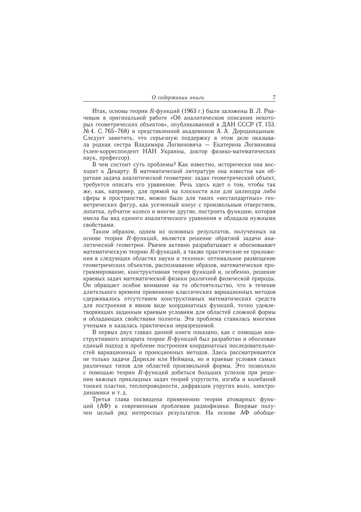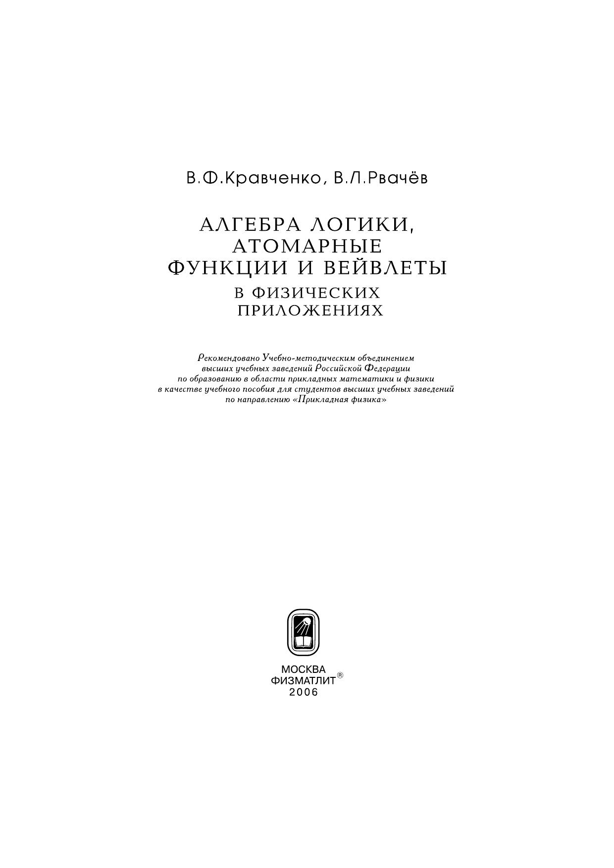 В монографии изложены методы алгебры логики, теория R-функций (функций В.Л. Рвачева), атомарных функций и вейвлетов. В первых двух главах описан алгебрологический метод R-функций и некоторые примеры его применения к решению краевых задач. Третья глава посвящена применению теории атомарных функций к современным проблемам радиофизики. В четвертой главе построен новый класс WА-систем функций Кравченко-Рвачева и исследовано его применение к задачам обнаружения кратковременных знакопеременных и сверхширокополосных процессов. Монография рассчитана на специалистов, интересующихся современными методами вычислительной математики и ее приложениями к решению краевых задач, цифровой обработкой сигналов и изображений, проблемами современной радиофизики и электроники, математического моделирования физических процессов, а также на студентов и аспирантов ВУЗов, специализирующихся по прикладной и вычислительной математике, прикладной физике и радиофизике.