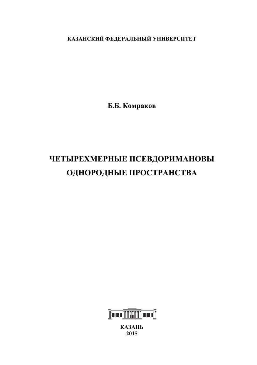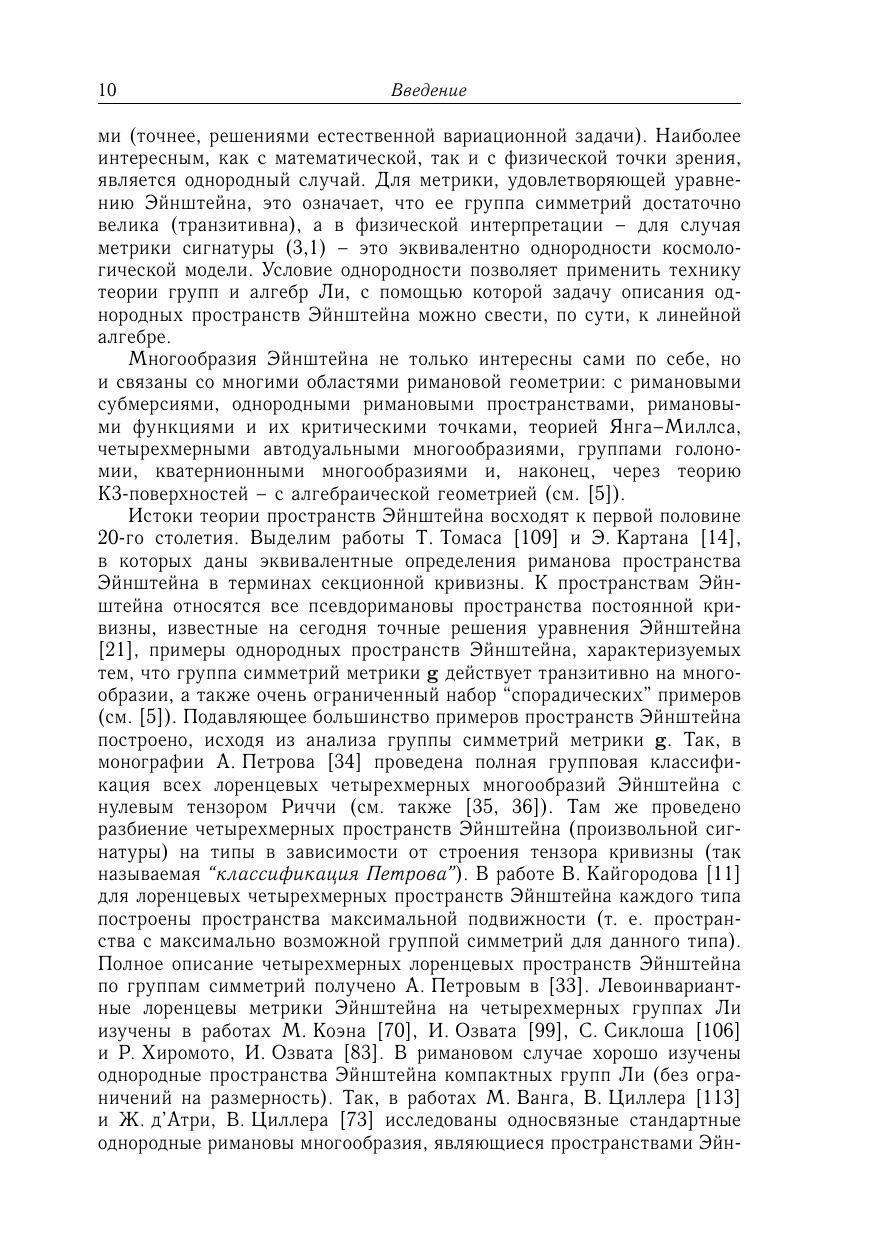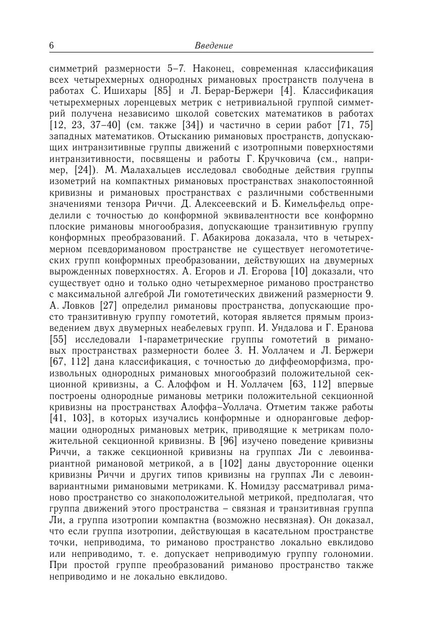 Книга посвящена изучению вещественных и комплексных четырехмерных псевдоримановых однородных пространств, также приведены четырехмерных однородные пространства Эйнштейна и решения уравнений Эйнштейна. Проведена полная локальная классификация четырехмерных псевдоримановых однородных пространств, эквивалентная описанию эффективных пар алгебр Ли. Для исследований использован алгебраический подход, а также соединение различных методов дифференциальной геометрии, теории групп и алгебр Ли и теории однородных пространств. Для научных работников, преподавателей, аспирантов и студентов, специализирующихся в области математики и ее приложений.