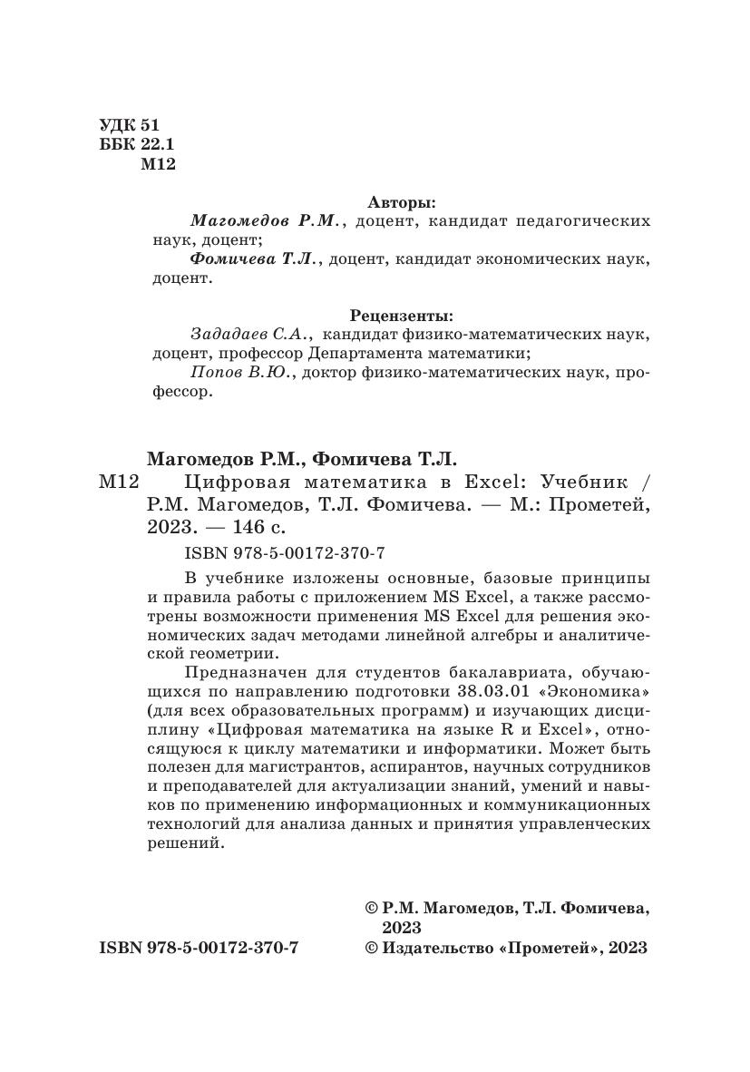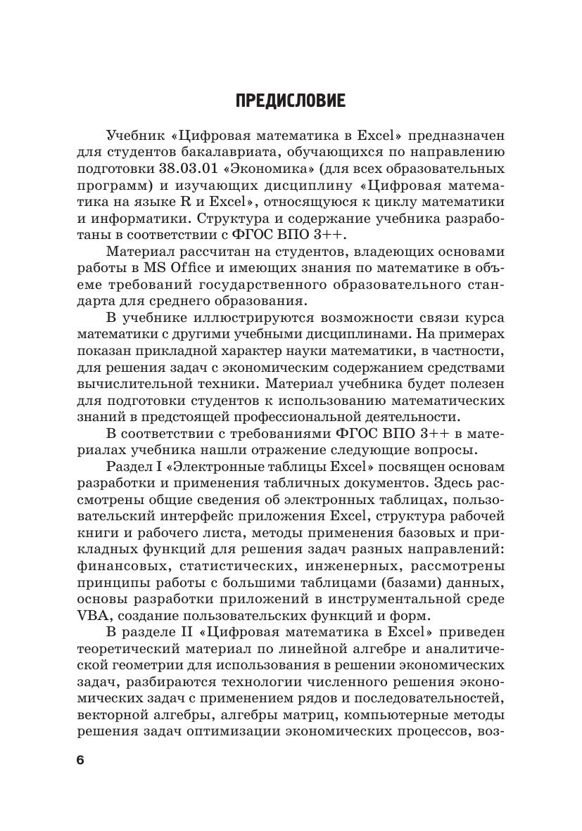 В учебнике изложены основные, базовые принципы и правила работы с приложением MS Excel, а также рассмотрены возможности применения MS Excel для решения экономических задач методами линейной алгебры и аналитической геометрии. Предназначен для студентов бакалавриата, обучающихся по направлению подготовки 38.03.01 «Экономика» (для всех образовательных программ) и изучающих дисциплину «Цифровая математика на языке R и Excel», относящуюся к циклу математики и информатики. Может быть полезен для магистрантов, аспирантов, научных сотрудников и преподавателей для актуализации знаний, умений и навыков по применению информационных и коммуникационных технологий для анализа данных и принятия управленческих решений.
