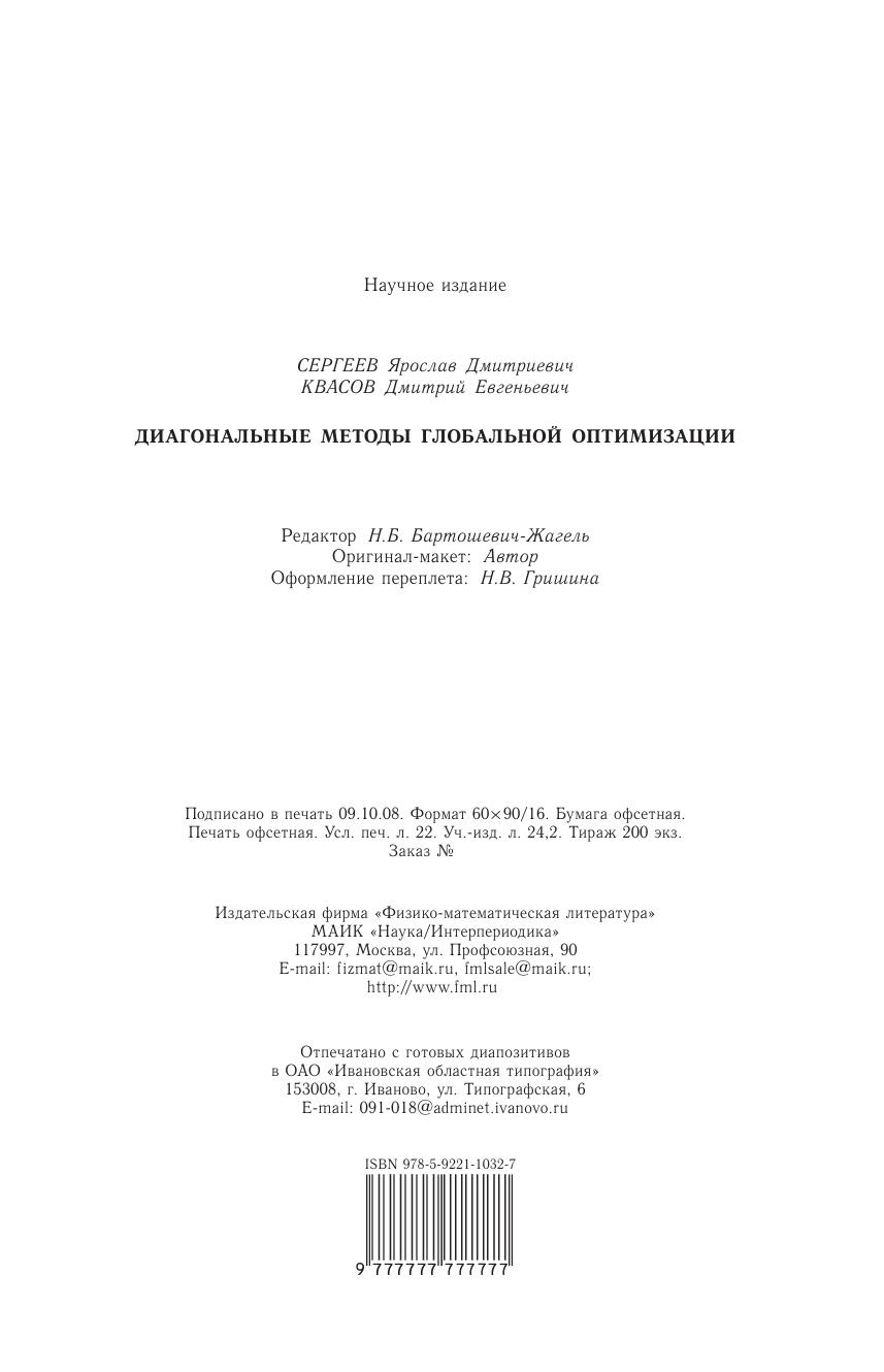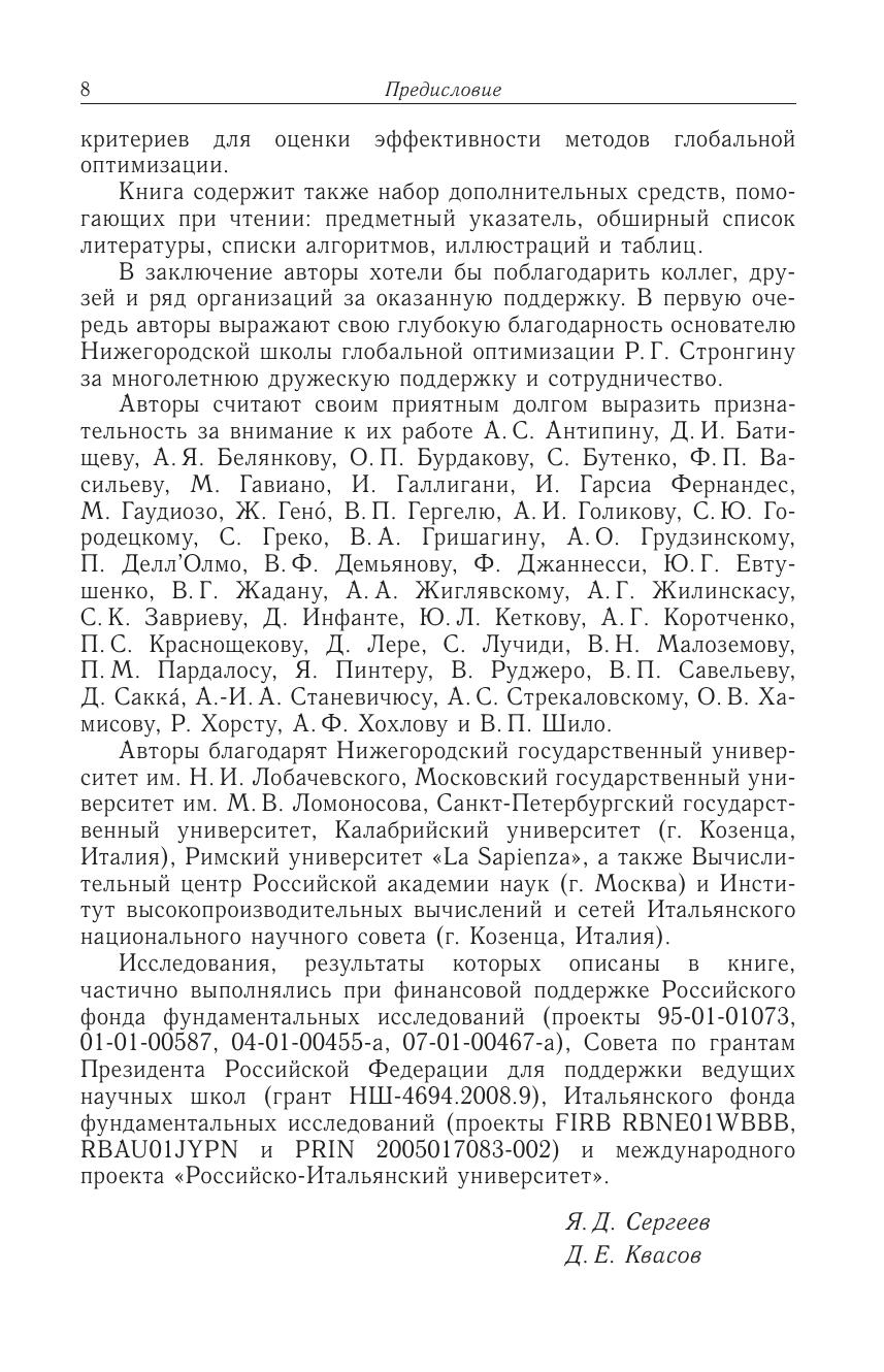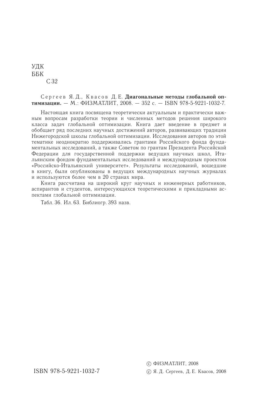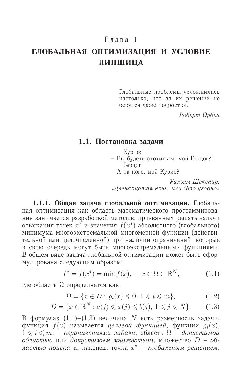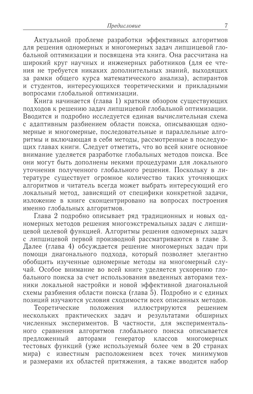 Настоящая книга посвящена теоретически актуальным и практически важным вопросам разработки теории и численных методов решения широкого класса задач глобальной оптимизации. Книга дает введение в предмет и обобщает ряд последних научных достижений авторов, развивающих традиции Нижегородской школы глобальной оптимизации. Исследования авторов по этой тематике неоднократно поддерживались грантами Российского фонда фундаментальных исследований, а также Советом по грантам Президента Российской Федерации для государственной поддержки ведущих научных школ, Итальянским фондом фундаментальных исследований и международным проектом «Российско-Итальянский университет». Результаты исследований, вошедшие в книгу, были опубликованы в ведущих международных научных журналах и используются более чем в 20 странах мира. Книга рассчитана на широкий круг научных и инженерных работников, аспирантов и студентов, интересующихся теоретическими и прикладными аспектами глобальной оптимизации.