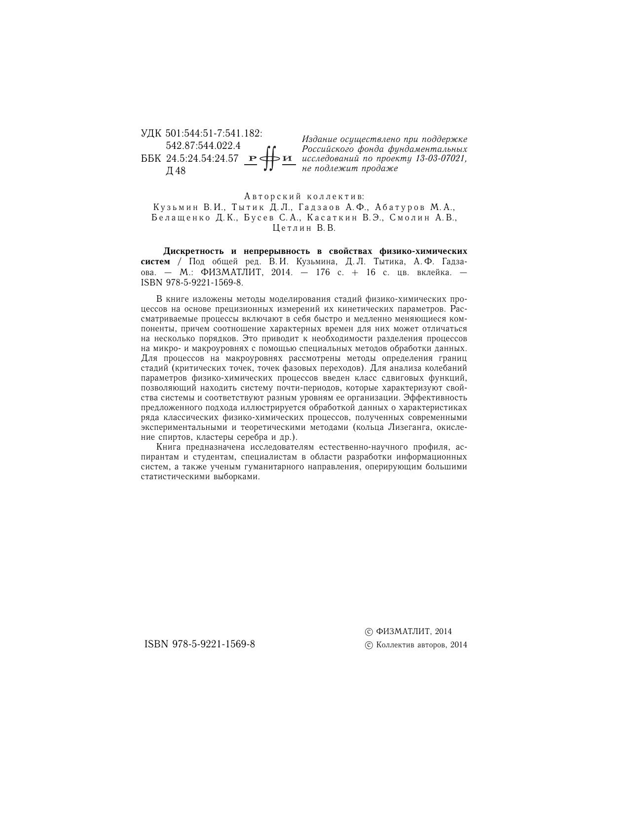 В книге изложены методы моделирования стадий физико-химических процессов на основе прецизионных измерений их кинетических параметров. Рассматриваемые процессы включают в себя быстро и медленно меняющиеся компоненты, причем соотношение характерных времен для них может отличаться на несколько порядков. Это приводит к необходимости разделения процессов на микро- и макроуровнях с помощью специальных методов обработки данных.