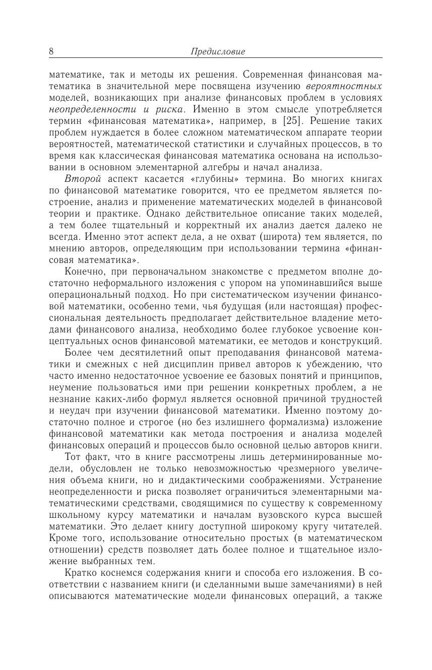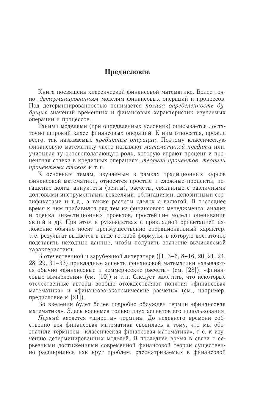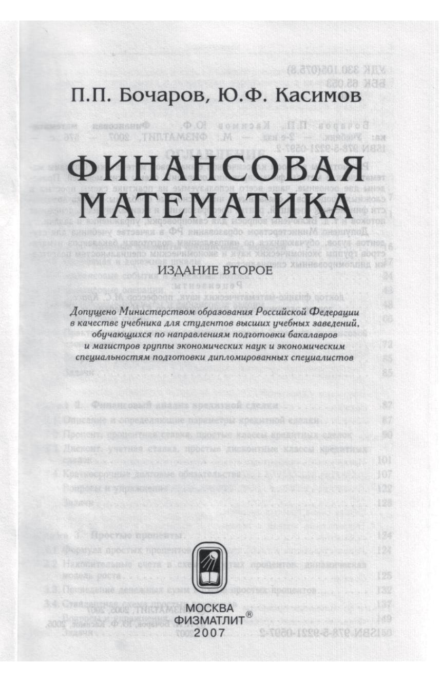 Рассмотрены вопросы классической финансовой математики. Описаны математические методы финансирования операций, схемы этих моделей. Приведены две основные, чаще всего используемые на практике схемы простых и сложных процентов и связанные с ними основные проблемы: оценка доходности финансовых операций, ренты, преобразование и эквивалентность денежных потоков и т. д. Включены вопросы для самопроверки, упражнения и задачи.