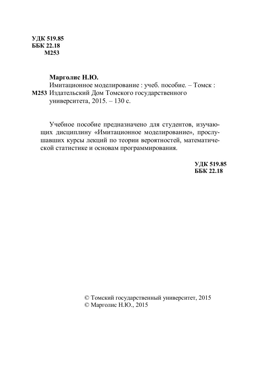 Учебное пособие предназначено для студентов, изучающих дисциплину «Имитационное моделирование», прослушавших курсы лекций по теории вероятностей, математической статистике и основам программирования.