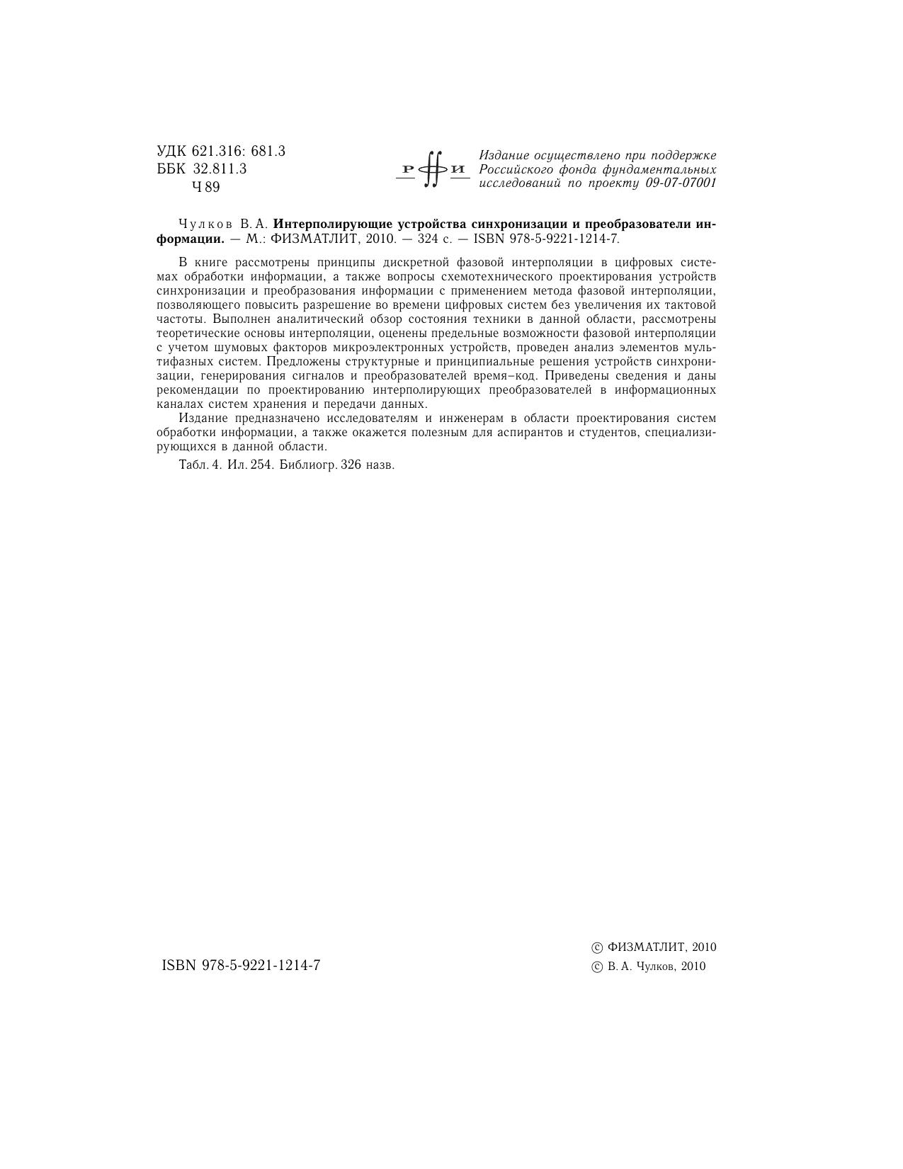 В книге рассмотрены принципы дискретной фазовой интерполяции в цифровых системах обработки информации, а также вопросы схемотехнического проектирования устройств синхронизации и преобразования информации с применением метода фазовой интерполяции, позволяющего повысить разрешение во времени цифровых систем без увеличения их тактовой частоты. Выполнен аналитический обзор состояния техники в данной области, рассмотрены теоретические основы интерполяции, оценены предельные возможности фазовой интерполяции с учетом шумовых факторов микроэлектронных устройств, проведен анализ элементов мультифазных систем. Предложены структурные и принципиальные решения устройств синхронизации, генерирования сигналов и преобразователей время–код. Приведены сведения и даны рекомендации по проектированию интерполирующих преобразователей в информационных каналах систем хранения и передачи данных. Издание предназначено исследователям и инженерам в области проектирования систем обработки информации, а также окажется полезным для аспирантов и студентов, специализирующихся в данной области.