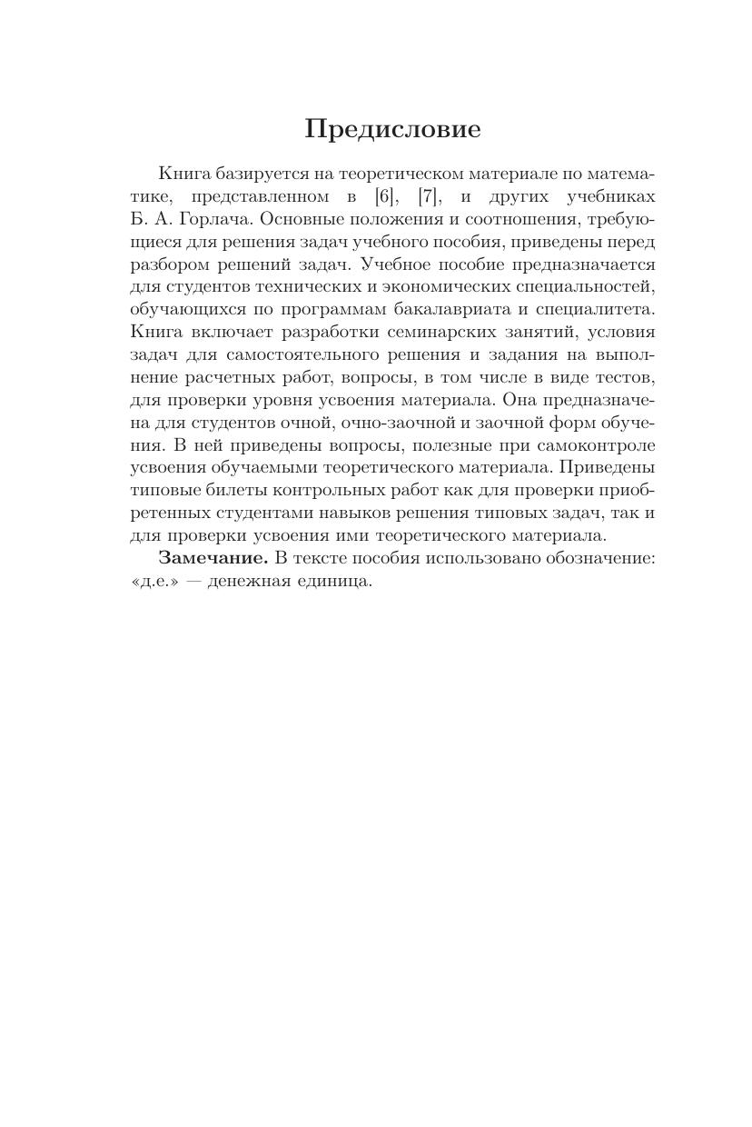Содержание соответствует программам математической подготовки бакалавров и специалистов по направлениям «Инженерное дело, технологические и технические науки» и «Математические и технические науки». Приводятся примеры приложения математики к решению конкретных технических и экономических задач. Разобраны решения типовых задач. Даны условия задач для самостоятельного решения и задания для выполнения расчетных работ. Приведены вопросы для самопроверки усвоения материала и типовые контрольные работы. Пособие предназначено для студентов различных форм обучения, в частности для самостоятельного овладения материалом. Методические разработки практических занятий будут полезны преподавателям математики.