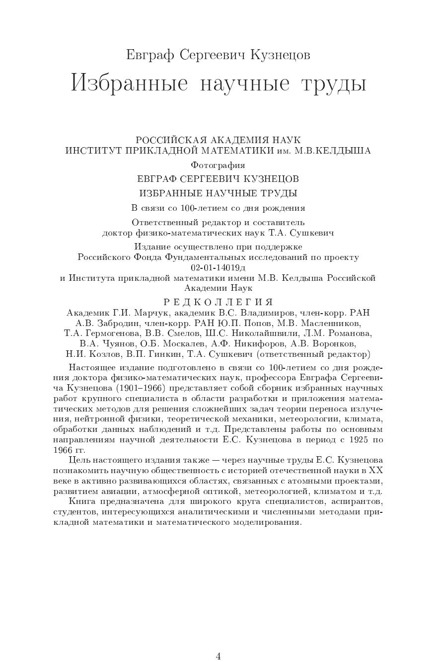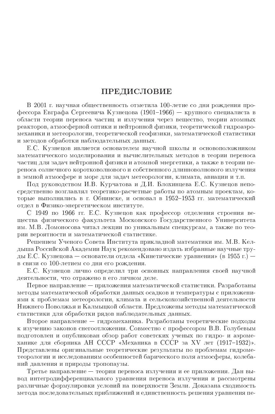 Настоящее издание, подготовленное в связи со 100-летием со дня рождения доктора физико-математических наук, профессора Евграфа Сергеевича Кузнецова (1901-1966), представляет собой избранных научных работ крупного специалиста в области разработки и приложения математических методов для решения сложнейших задач теории переноса излучения, нейтронной физики, теоретической механики, метеорологии, климата, оработки данных наблюдений и т.д. Представлены работы по основным напрвлениям научной деятельности Е.С.Кузнецова в период с 1925 по 1966 гг.Цель настоящего издания - через научные труды Е.С.Кузнецова познакомить научную общестенность с историей отечественной науки ХХ века в активно развивающихся областях, связанных с атомными проектами, авиацией, атмосферной оптикой, метеорологией, климатом и т.д.Для широкого круга специалистов, аспирантов, студентов, интересующихся аналитическими и численными методами прикладной математики и математического моделирования.