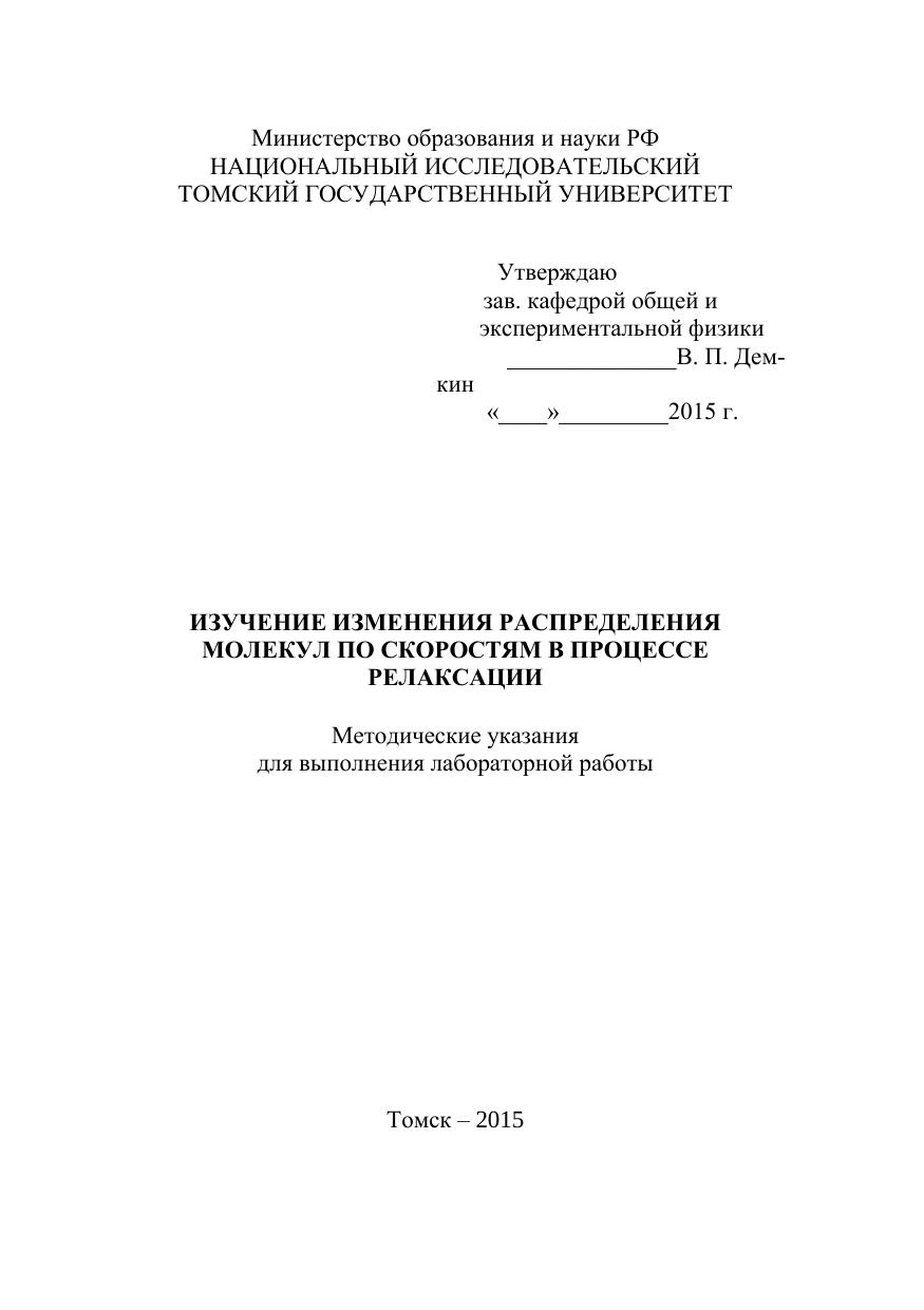 Изучение изменения распределения молекул по скоростям в процессе релаксации. Методические указания для выполнения лабораторной работы