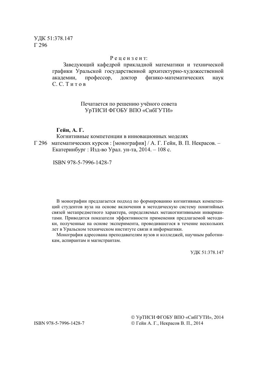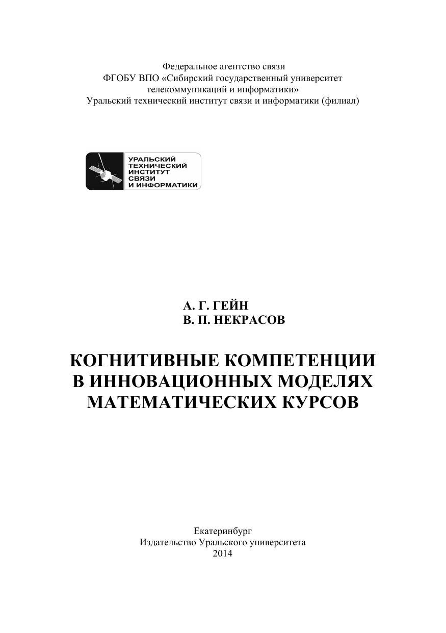 Когнитивные компетенции в инновационных моделях математических курсов: монография
