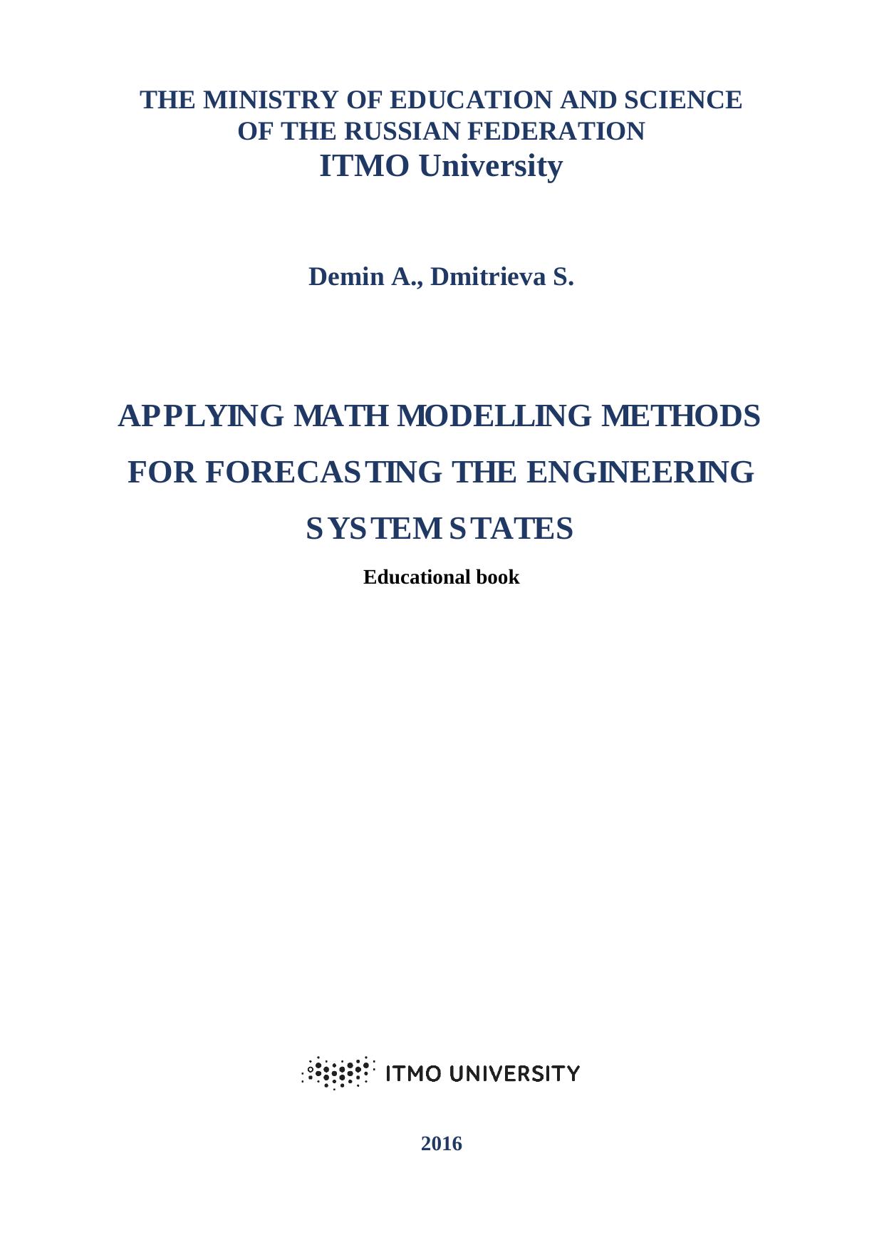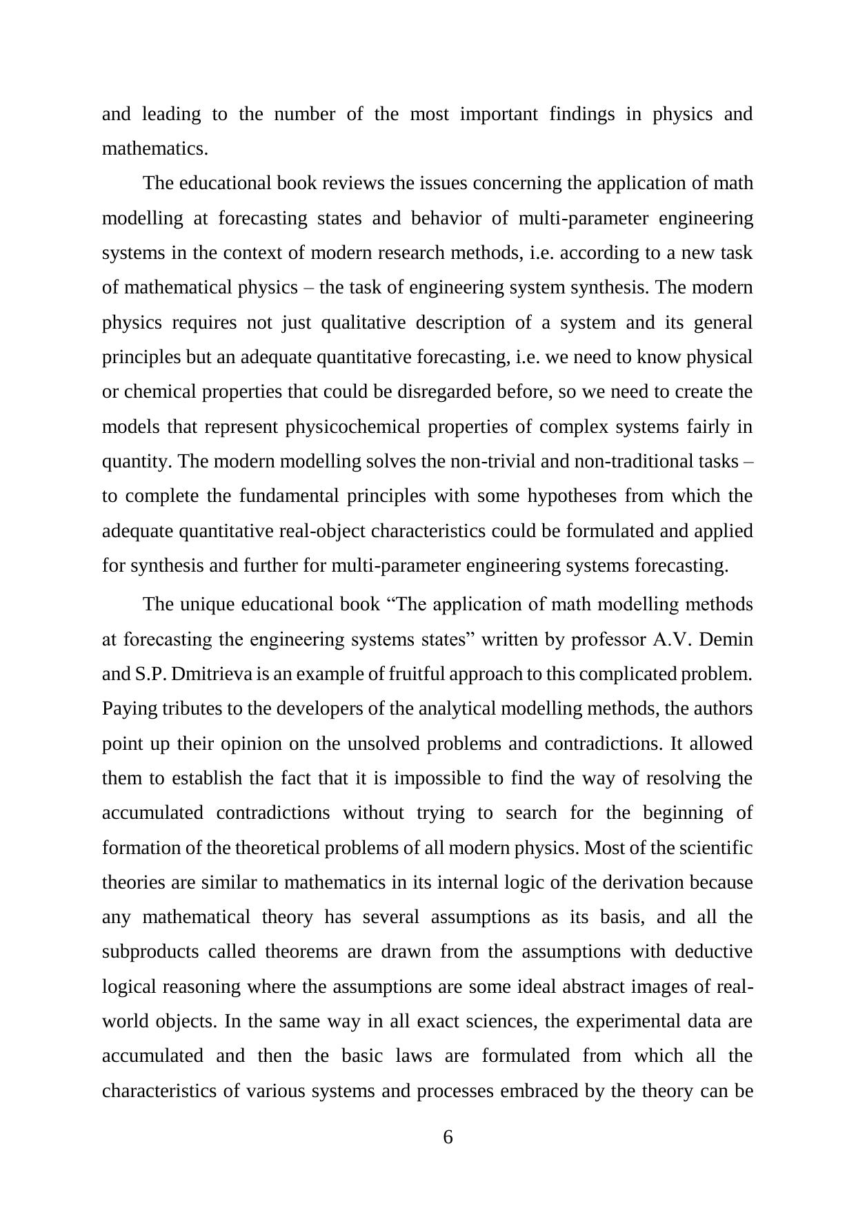 The educational book reviews the issues concerning the application of math modelling at forecasting states and behaviour of multi-parameter engineering systems in the context of modern research methods, i.e. according to a new task of mathematical physics – the task of engineering system synthesis.