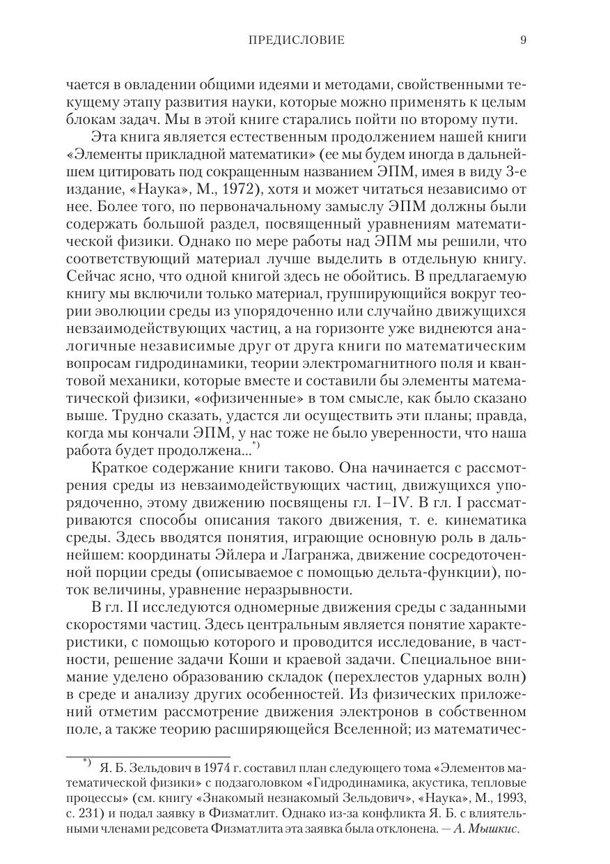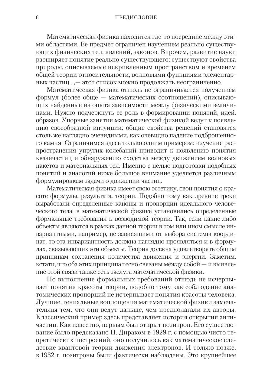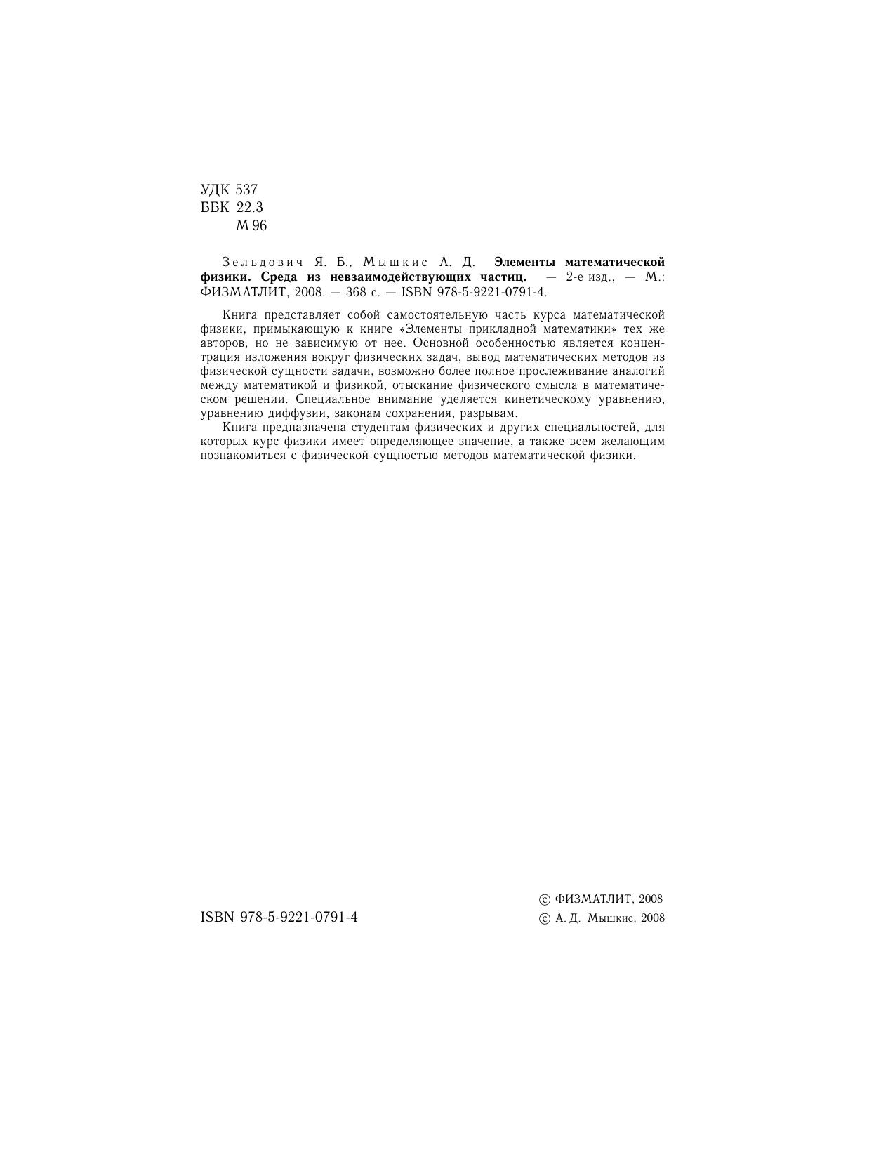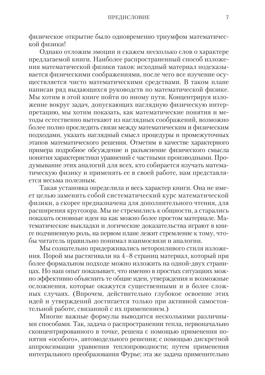 Книга представляет собой самостоятельную часть курса математической физики, примыкающую к книге «Элементы прикладной математики» тех же авторов, но независимую от нее. Основной особенностью является концентрация изложения вокруг физических задач, вывод математических методов из физической сущности задачи, возможно более полное прослеживание аналогий между математикой и физикой, отыскание физического смысла в математическом решении. Специальное внимание уделяется кинетическому уравнению, уравнению диффузии, законам сохранения, разрывам. Книга предназначена студентам физических и других специальностей, для которых курс физики имеет определяющее значение, а также всем желающим познакомиться с физической сущностью методов математической физики.
