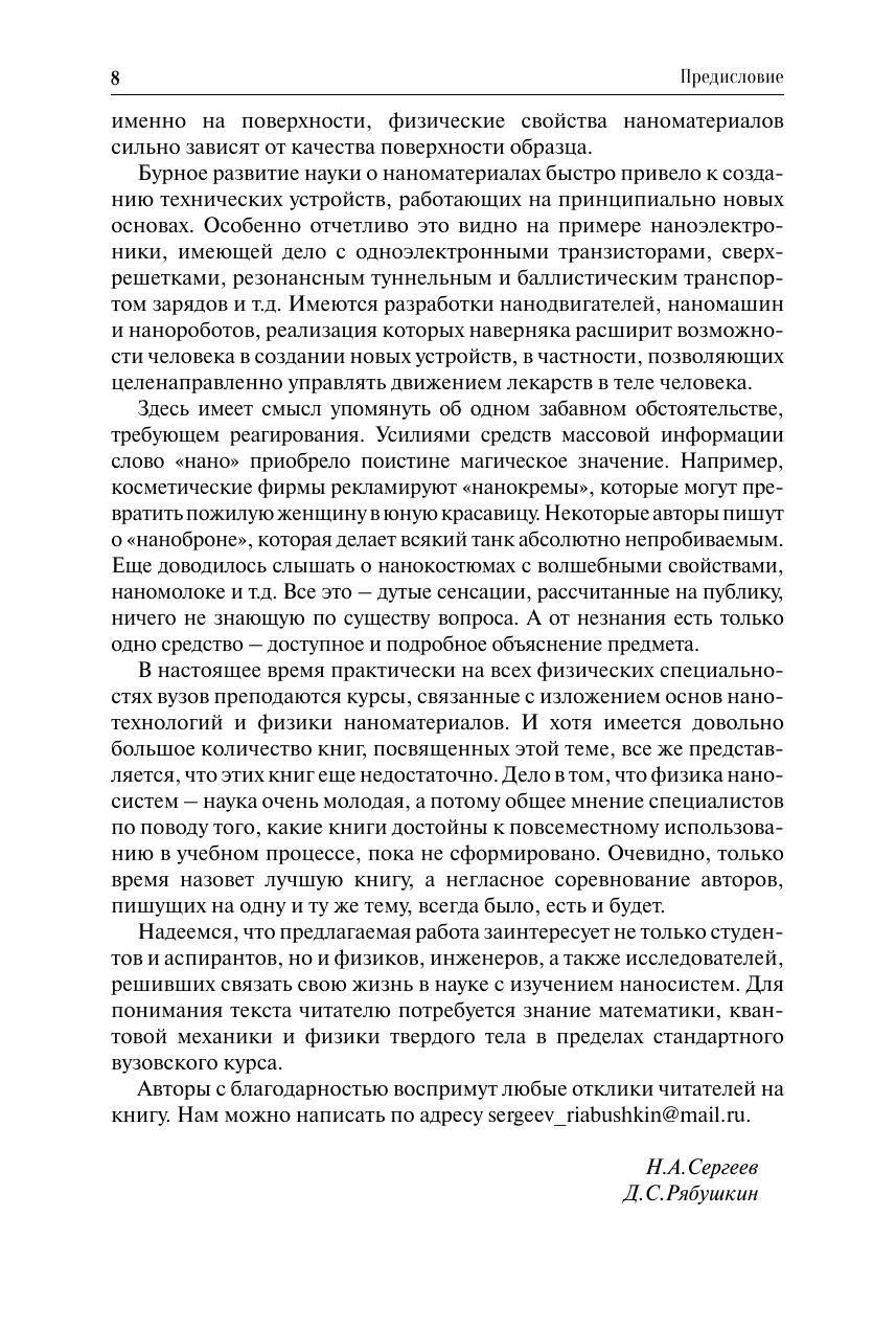 Изложены основы физики наносистем. Обсуждаются свойства сверхрешеток, транспортные явления в низкоразмерных системах, оптические свойства наноструктур, квантовые явления в магнитном поле. Анализируются перспективы создания различных устройств наноэлектроники и молекулярной электроники. Для студентов высших учебных заведений, аспирантов, научных работников и инженеров, работающих в области физики наносистем и нанотехнологий.