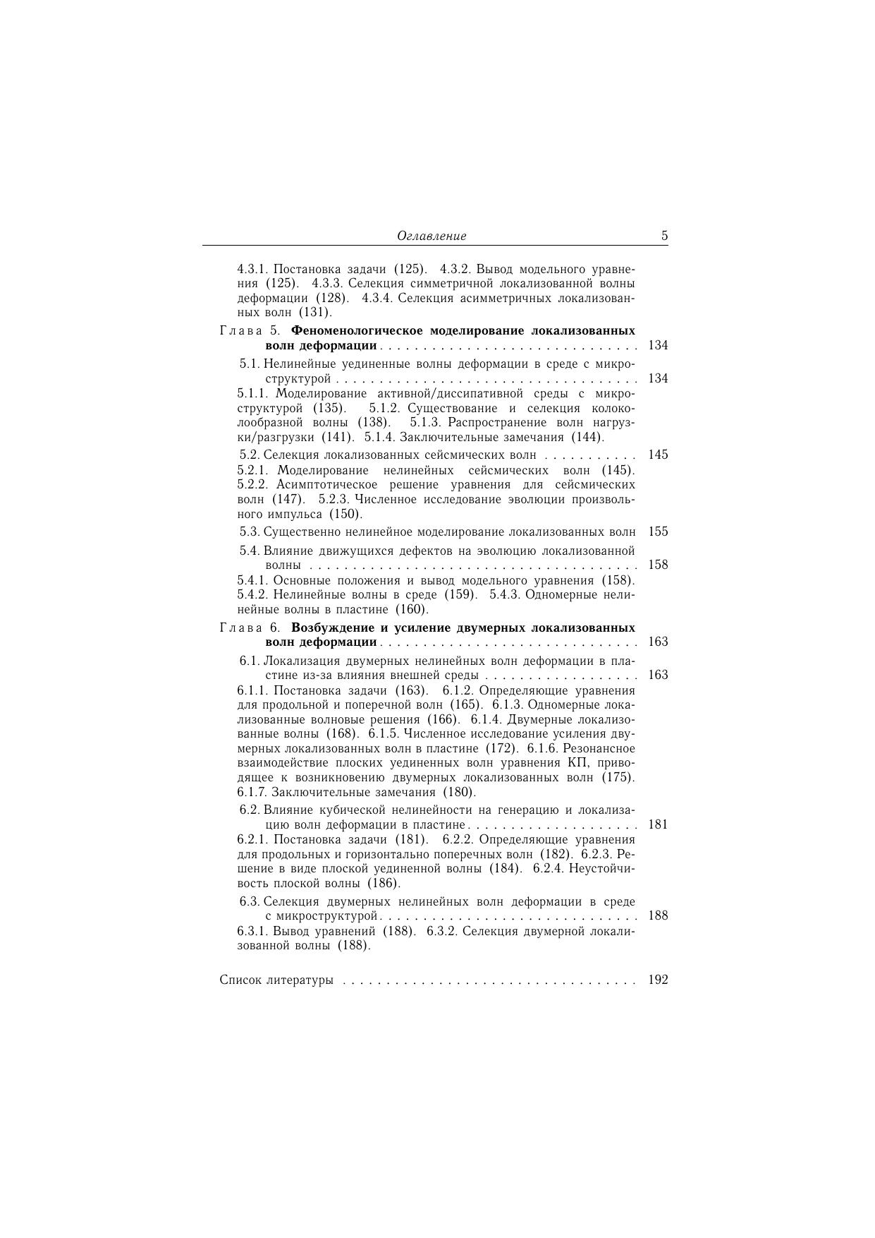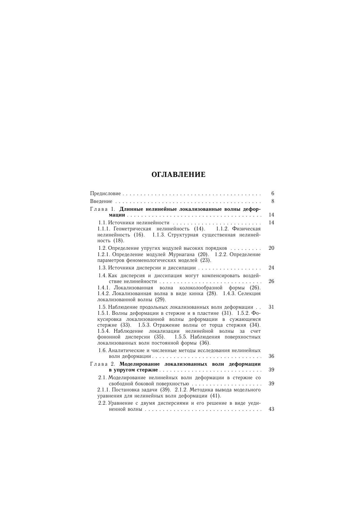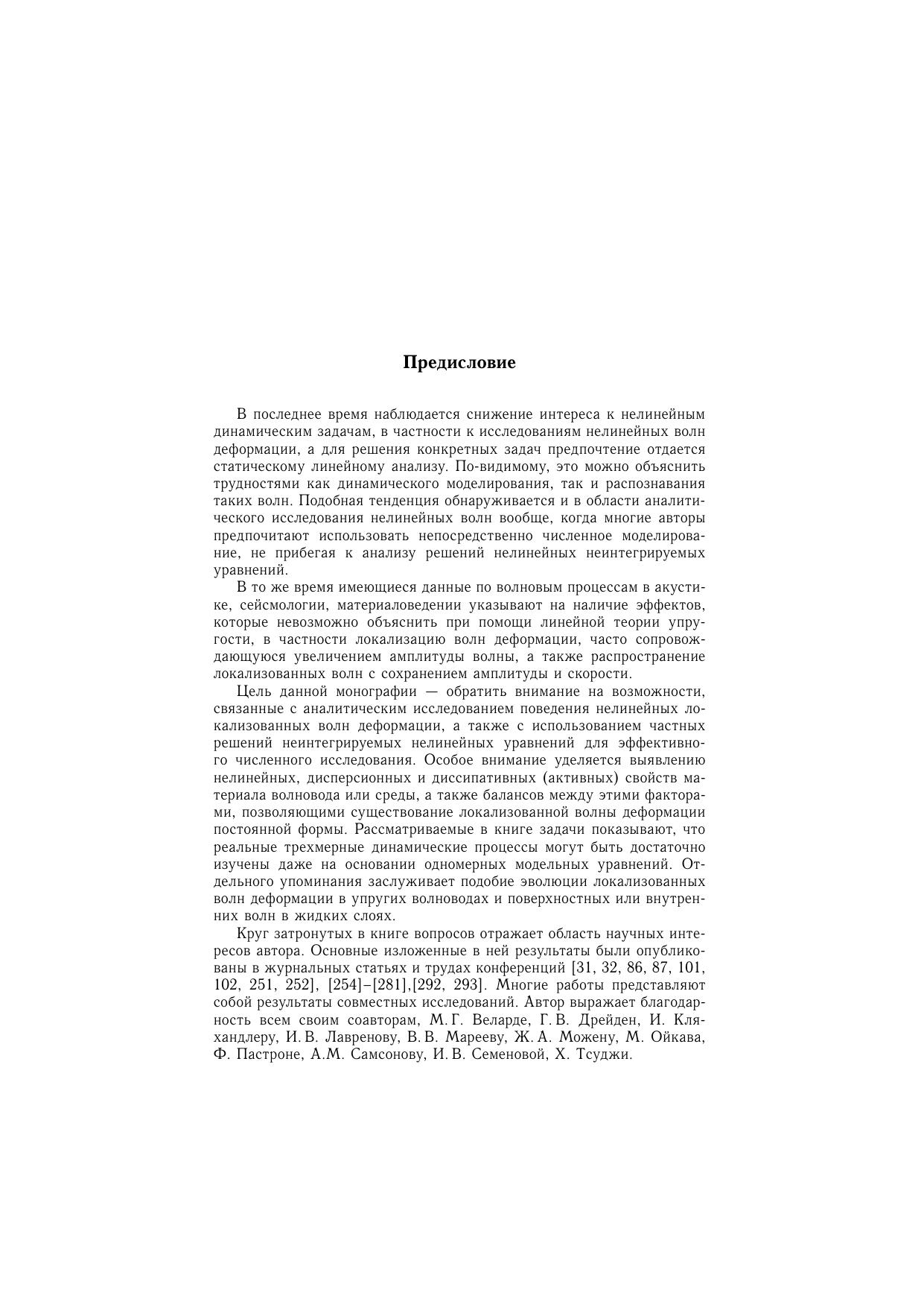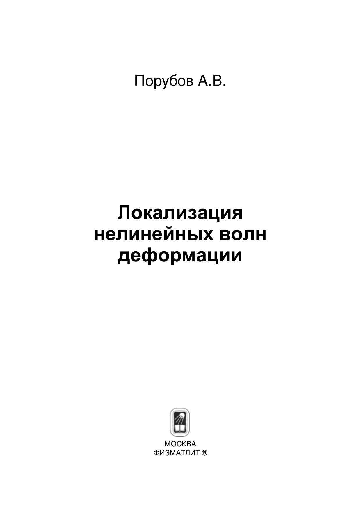 В монографии рассматривается широкий круг задач, связанных с локализацией нелинейных волн деформации в средах и волноводах. Представлена асимптотическая процедура вывода модельных нелинейных уравнений для волн деформации в волноводах из вариационного принципа Гамильтона-Остроградского. Исследуются различные факторы, способствующие локализации волны деформации, в том числе влияние микроструктуры материала и воздействие внешней среды на боковую поверхность волновода. Отличительной особенностью книги является систематическое использование частных точных и асимптотических решений выведенных модельных нелинейных уравнений для их численных решений в общем случае. Книга представляет интерес для широкого круга научных сотрудников, занимающихся изучением нелинейных волновых процессов и свойств материалов, а также для аспирантов и студентов старших курсов университе