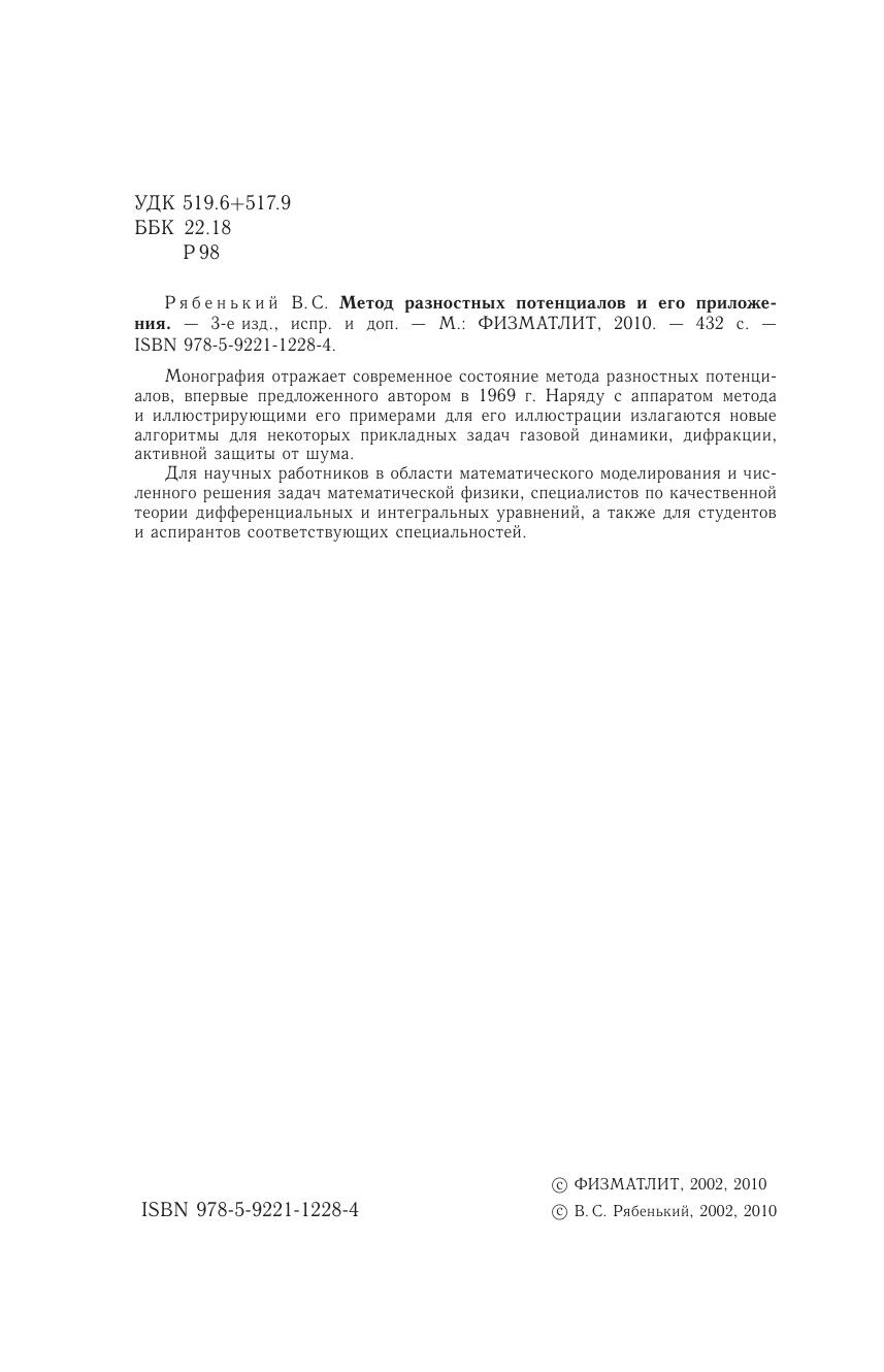 Монография отражает современное состояние метода разностных потенциалов, впервые предложенного автором в 1969 г. Наряду с аппаратом метода и иллюстрирующими его примерами для его иллюстрации излагаются новые алгоритмы для некоторых прикладных задач газовой динамики, дифракции, активной защиты от шума.Для научных работников в области математического моделирования и численного решения задач математической физики, специалистов по качественной теории дифференциальных и интегральных уравнений, а также для студентов и аспирантов соответствующих специальностей.
