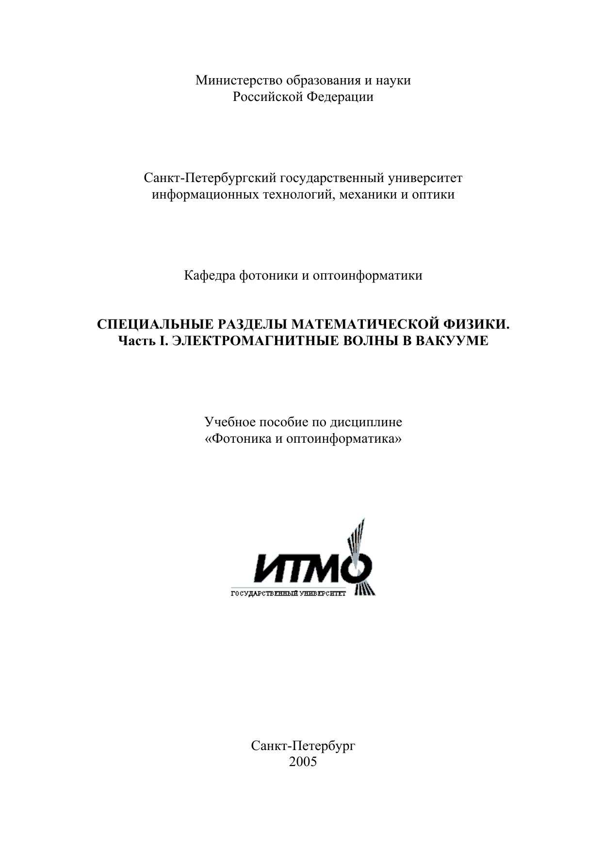 Специальные разделы математической физики. Часть I. Электромагнитные волны в вакууме