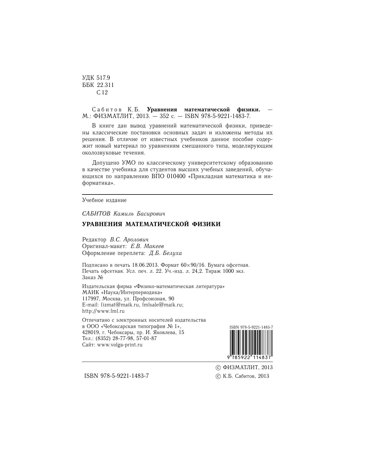 Гриф: Допущено УМО по классическому университетскому образованию в качестве учебника для студентов высших учебных заведений, обучающихся по направлению ВПО 010400 «Прикладная математика и информатика».