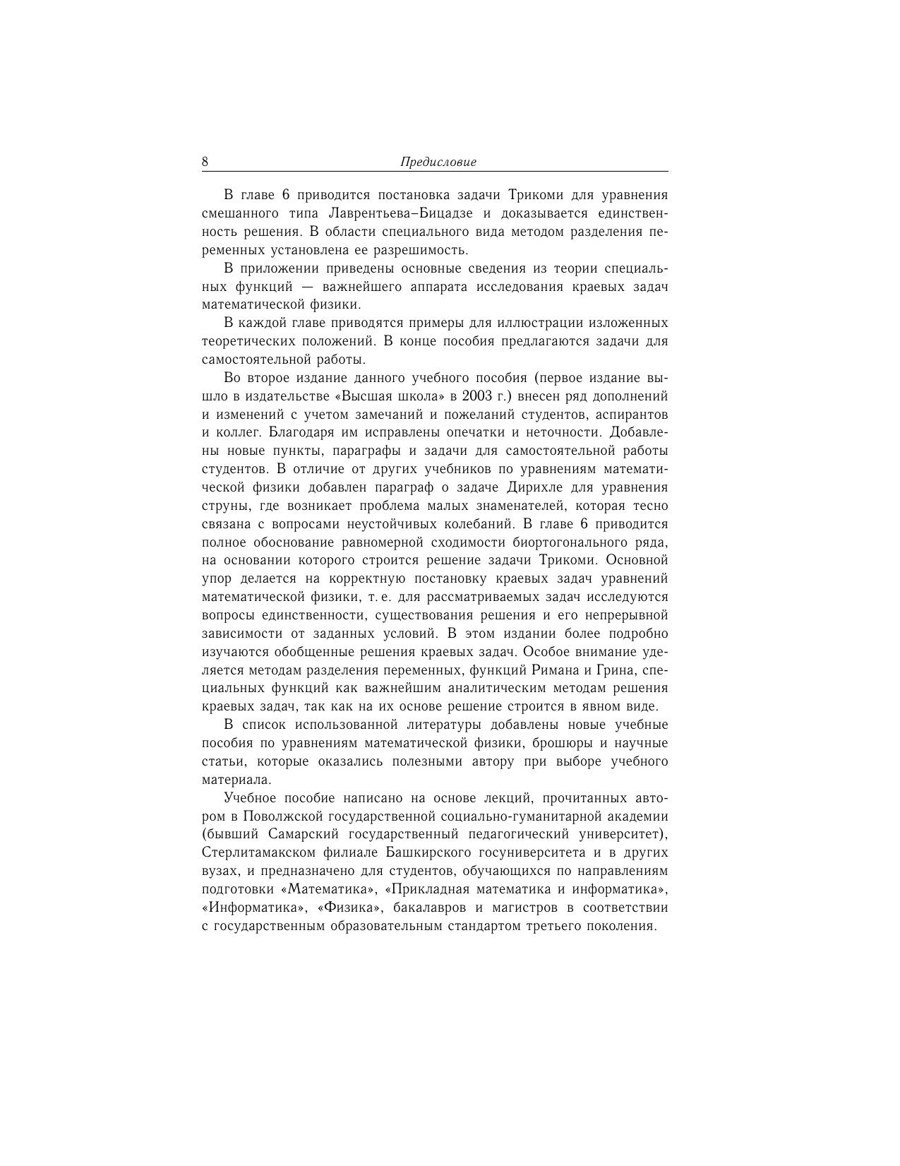 В книге дан вывод уравнений математической физики, приведены классические постановки основных задач и изложены методы их решения. В отличие от известных учебников данное пособие содержит новый материал по уравнениям смешанного типа, моделирующим околозвуковые течения.