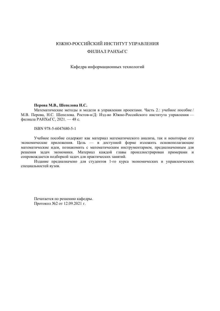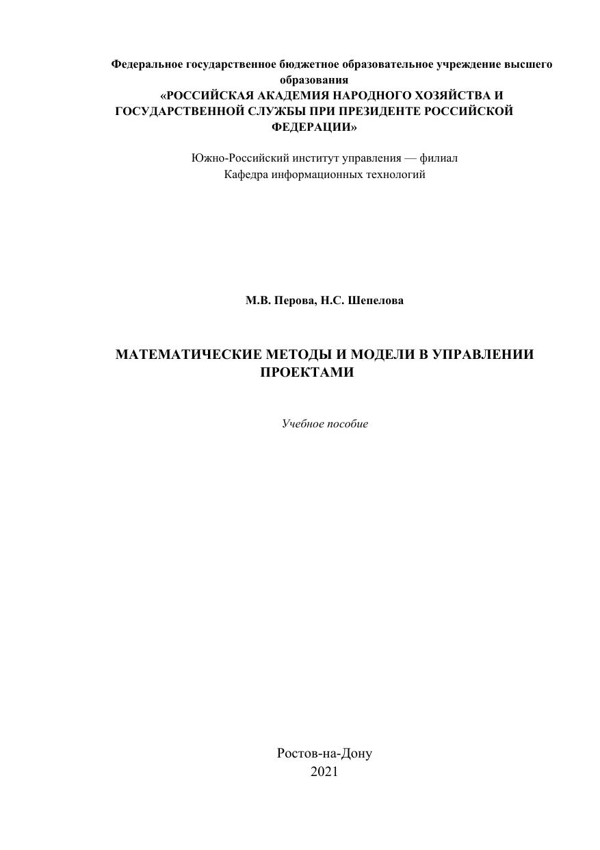 Математические методы и модели в управлении проектами. Часть 2