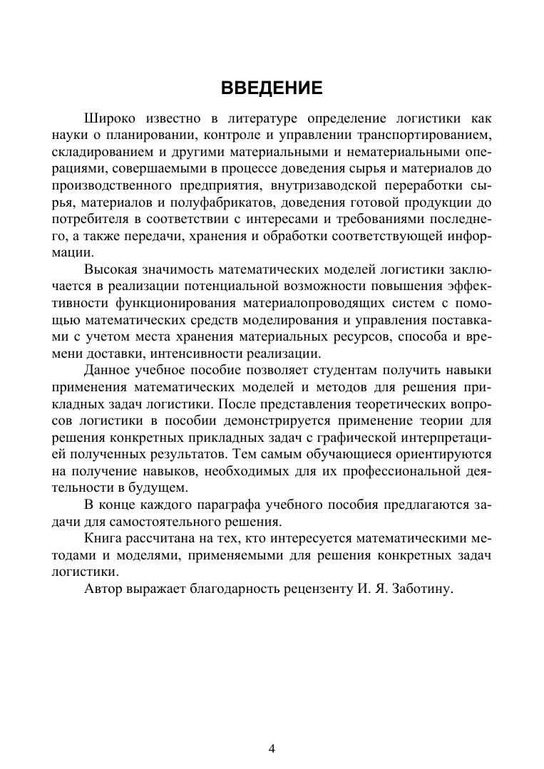 В учебном пособии приводится теоретический материал по математическим моделям логистики, необходимый для решения конкретных практических задач логистики, осуществляется визуализация данных, полученных в результате решения. Учебное пособие предназначено студентов обучающихся по направлениям «Бизнес-информатика», «Прикладная математика и информатика» вузов, а также может быть полезно для самостоятельного изучения математических моделей логистики студентами других направлений таких, как, например, «Прикладная математика».