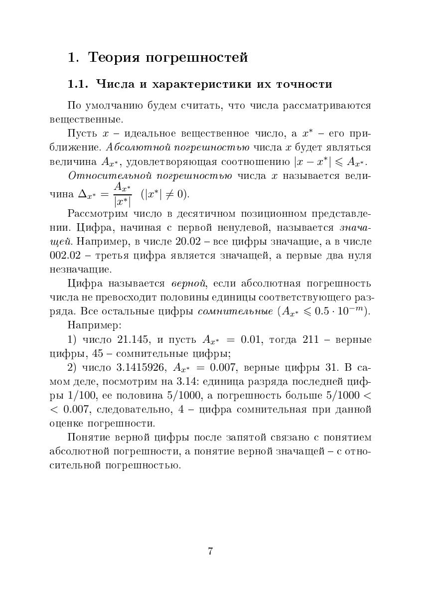 Даются основные понятия, изучаемые в первой части курса «Численные методы»: теория погрешностей; методы решения нелинейных уравнений, линейных и нелинейных систем; теории интерполяции, численного дифференцирования и численного интегрирования. Для студентов 3-го курса Института математики и компьютерных наук всех направлений подготовки.