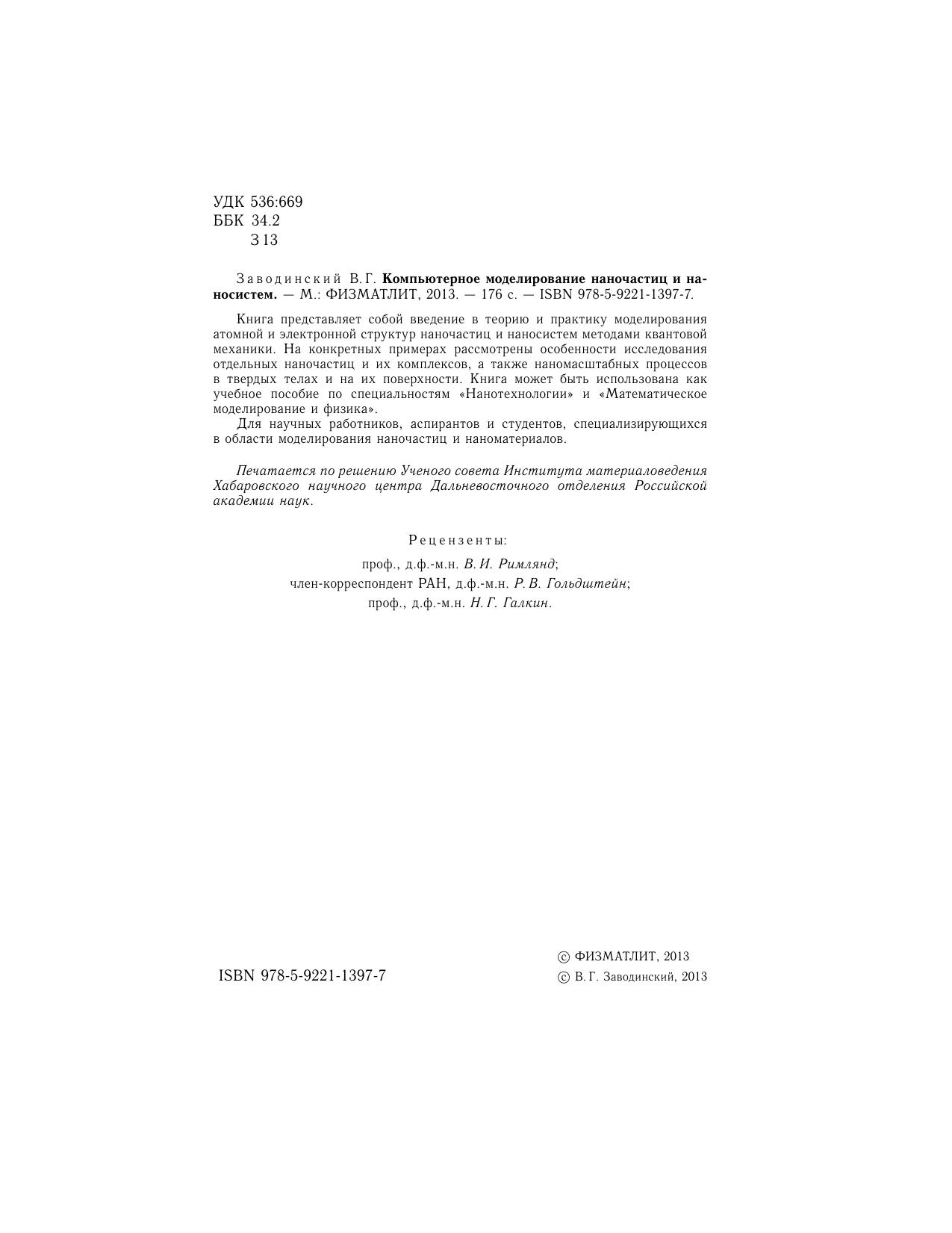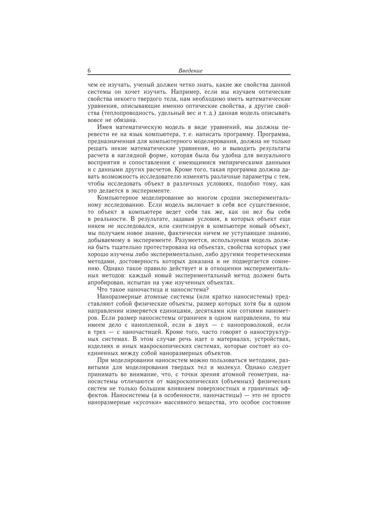Книга представляет собой введение в теорию и практику моделирования атомной и электронной структур наночастиц и наносистем методами квантовой механики. На конкретных примерах рассмотрены особенности исследования отдельных наночастиц и их комплексов, а также наномасштабных процессов в твердых телах и на их поверхности. Книга может быть использована как учебное пособие по специальностям «Нанотехнологии» и «Математическое моделирование и физика».Для научных работников, аспирантов и студентов, специализирующихся в области моделирования наночастиц и наноматериалов.