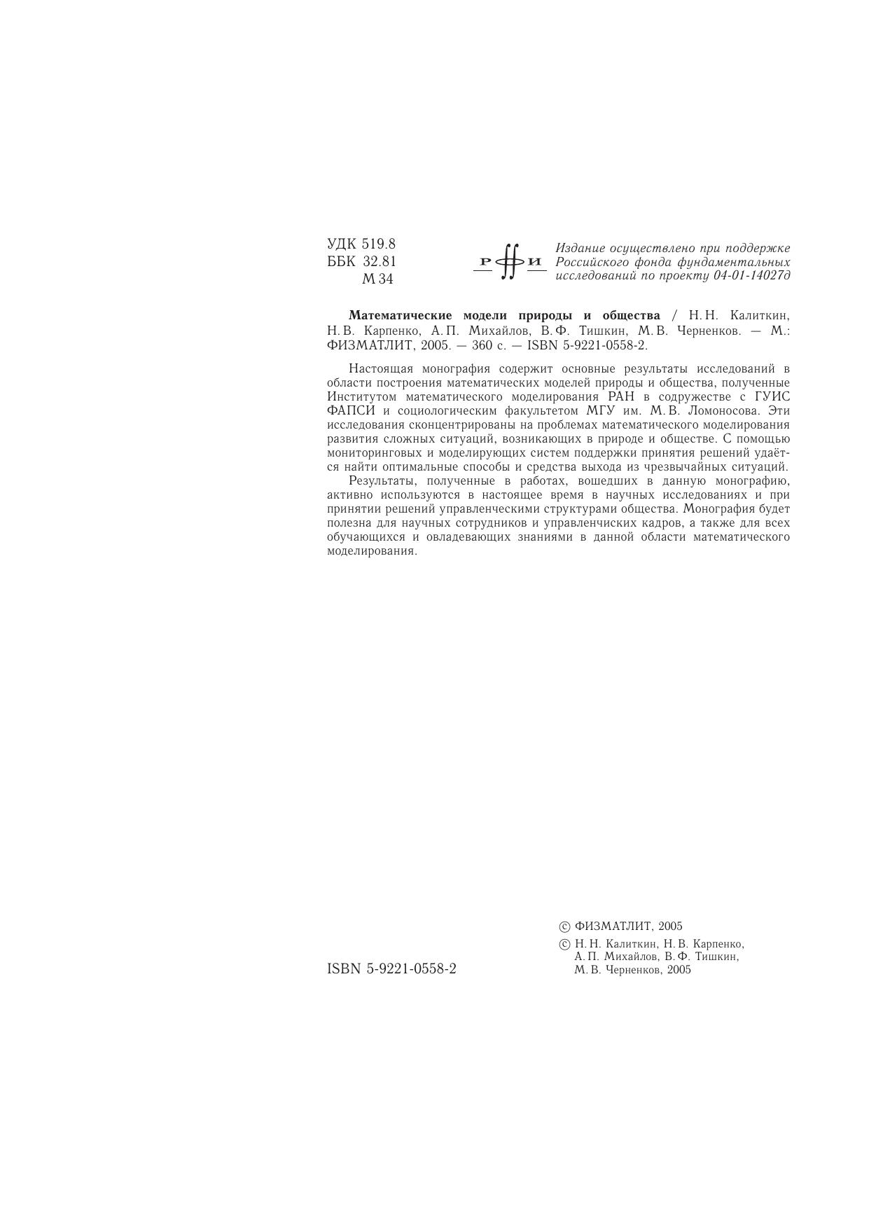 Настоящая монография содержит основные результаты исследований в области построения математических моделей природы и общества, полученные Институтом математического моделирования РАН в содружестве с ГУИС ФАПСИ и социологическим факультетом МГУ им. М.В. Ломоносова. Эти исследования сконцентрированы на проблемах математического моделирования развития сложных ситуаций, возникающих в природе и обществе. С помощью мониторинговых и моделирующих систем поддержки принятия решений удаётся найти оптимальные способы и средства выхода из чрезвычайных ситуаций. Результаты, полученные в работах, вошедших в данную монографию, активно используются в настоящее время в научных исследованиях и при принятии решений управленческими структурами общества. Монография будет полезна для научных сотрудников и управленческих кадров, а также для всех обучающихся и овладевающих знаниями в данной области математического моделирования.