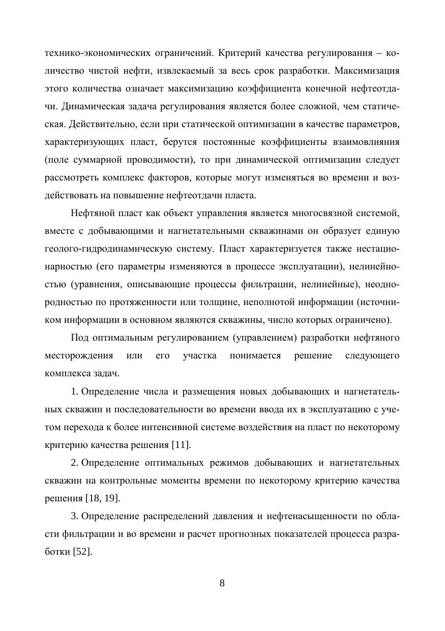 В монографии предложены экономико-математические модели задачи оптимального регулирования извлечения нефти по технологическому или экономическому критериям качества решения. С помощью вычислительных экспериментов исследуется процесс вытеснения нефти водой или водой с активной примесью в элементах площадного заводнения с нерегулярной расстановкой скважин. Постановка задачи и методы решения основаны на применении методов математического программирования и стохастического моделирования с использованием полностью консервативных разностных схем. Выполнено сравнение основных технико-экономических показателей извлечения нефти, полученных без учета и с учетом оптимального регулирования. Книга предназначена для научных и инженерно-технических работников, аспирантов и студентов, занимающихся вопросами математического моделирования технологий извлечения нефти из слоистых пластов.