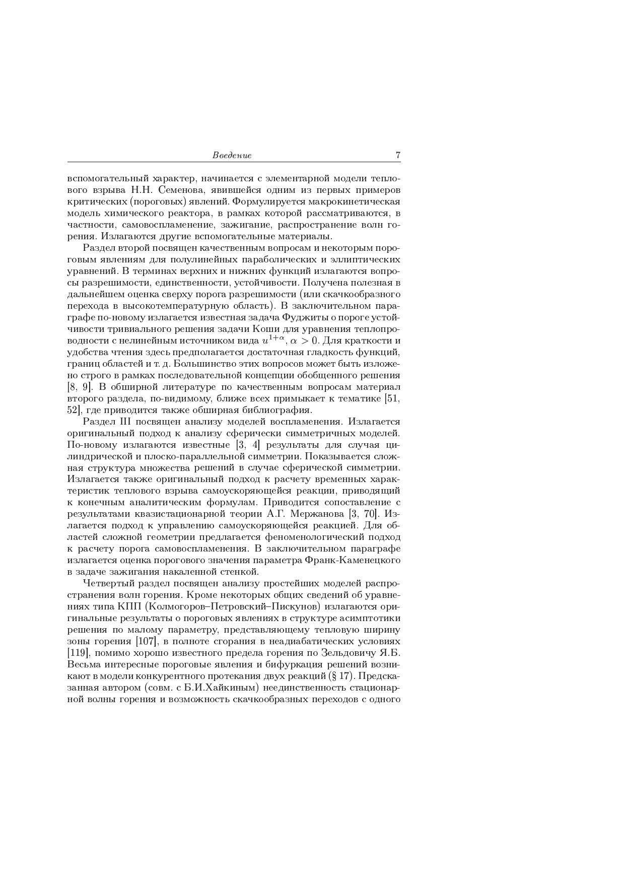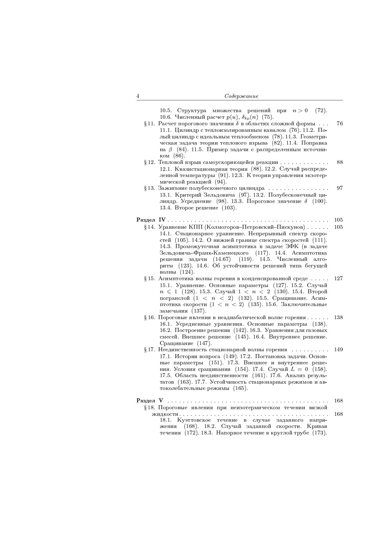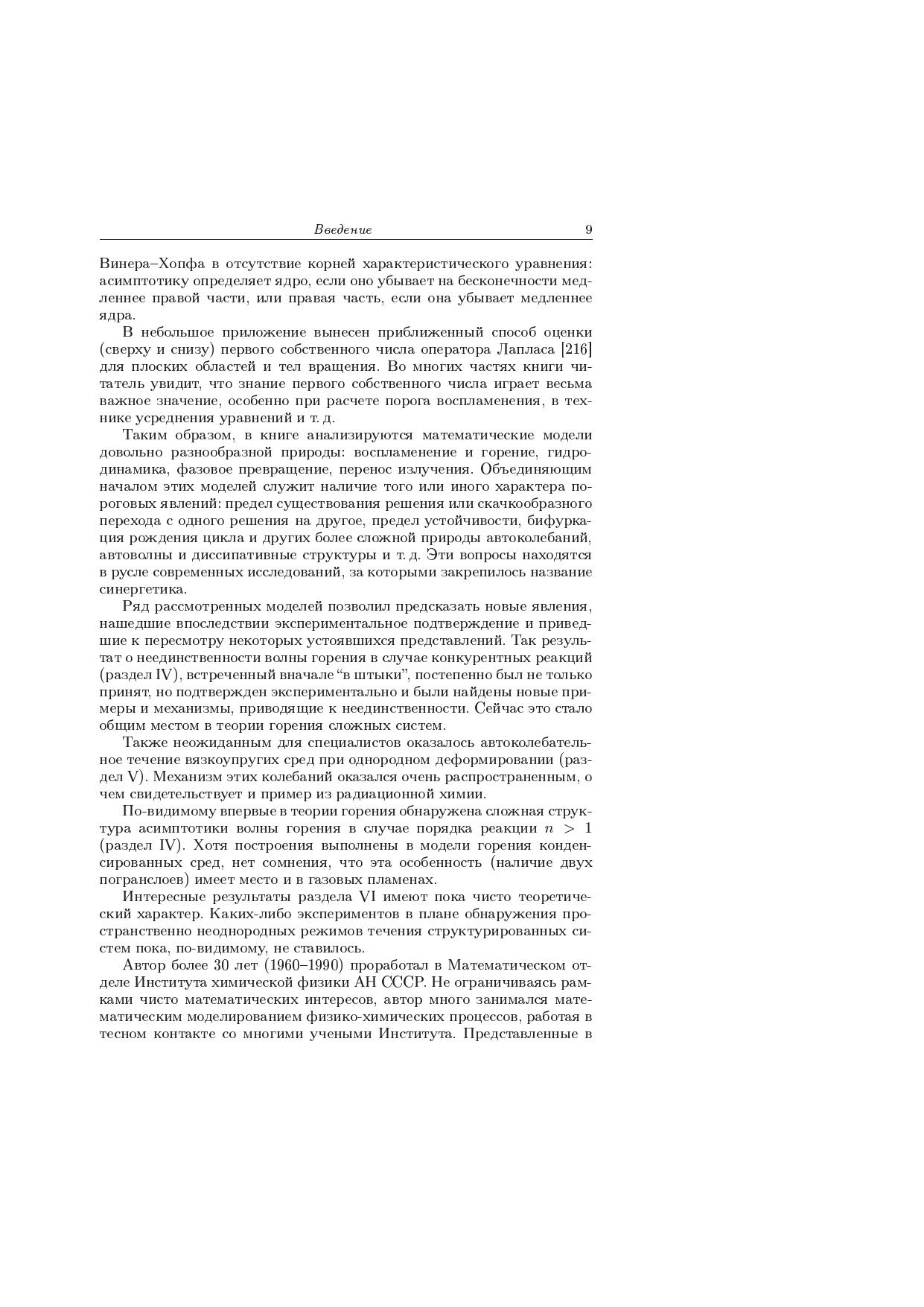 Книга написана по материалам оригинальных работ автора по математическому моделированию процессов воспламенения и горения, неизотермического течения вязкой и вязкоупругой жидкости, реологических особенностей и самоорганизации в структурированных текучих системах, фазовых переходов и процессов переноса излучения. Объединяющим началом исследования разнообразных моделей служат пороговые (критические) явления по тем или иным параметрам и их характер (изменение числа решений и скачкообразный переход с одного решения на другое, потеря устойчивости и бифуркация рождения цикла или более сложных пространственно-временных автоколебаний, автоволны и диссипативные структуры, изменение структуры асимптотики по малому параметру и большим значениям аргумента и т.д.). Излагаемый материал находится в русле современных исследований, за которыми закрепилось название синергетика. Для научных работников, аспирантов и студентов, специализирующихся в области прикладной математики и математического моделирования