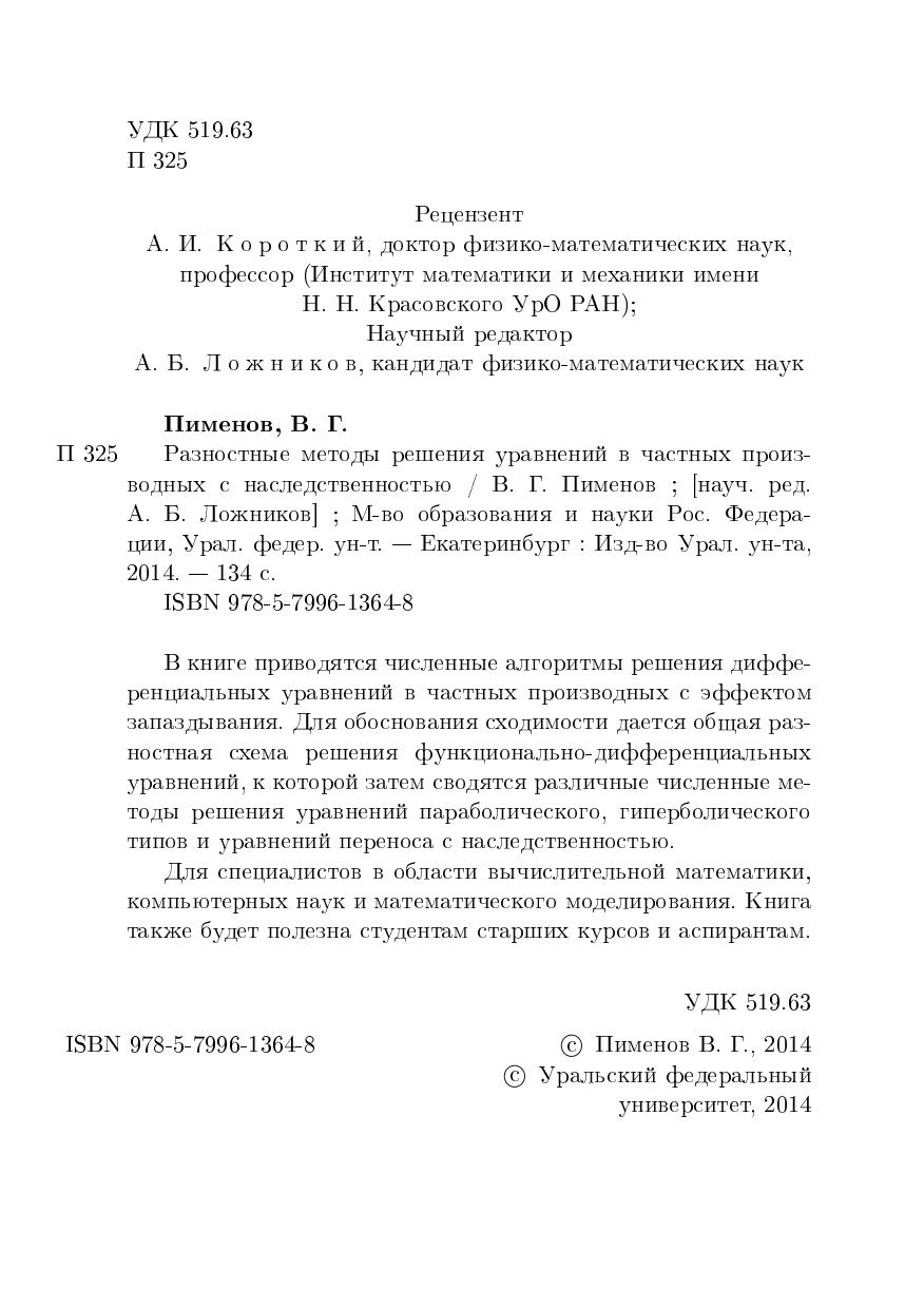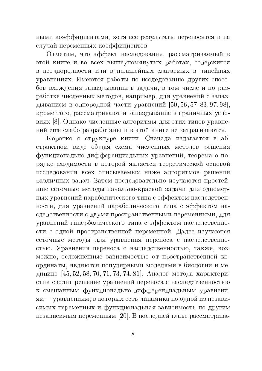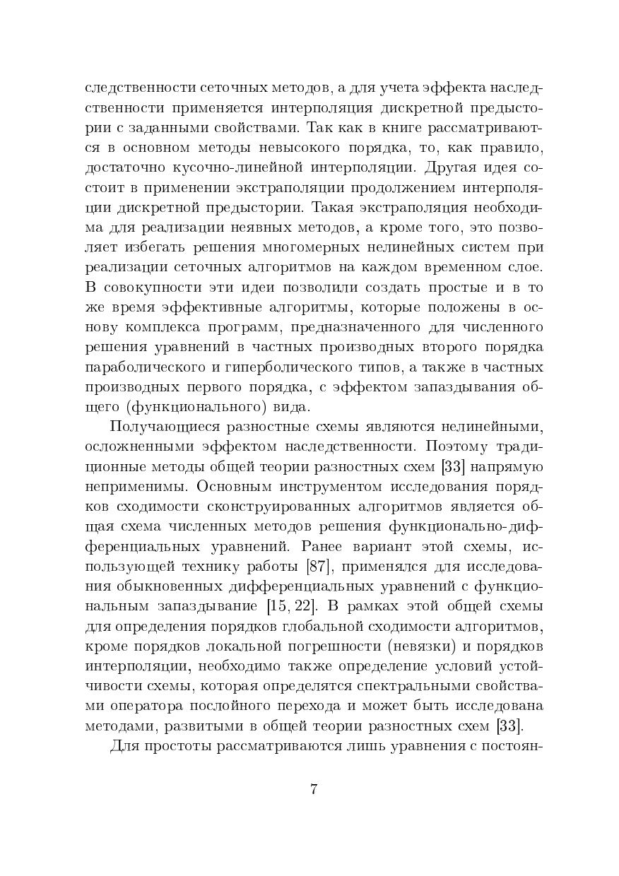 В книге приводятся численные алгоритмы решения диффе-ренциалвных уравнений в частных производных с эффектом запаздывания. Для обоснования сходимости дается общая разностная схема решения функционалвно-дифференциалвных уравнений, к которой затем сводятся различные численные методы решения уравнений параболического, гиперболического типов и уравнений переноса с наследственноствю. Для специалистов в области вычислителвной математики, компьютерных наук и математического моделирования. Книга также будет полезна студентам старших курсов и аспирантам.