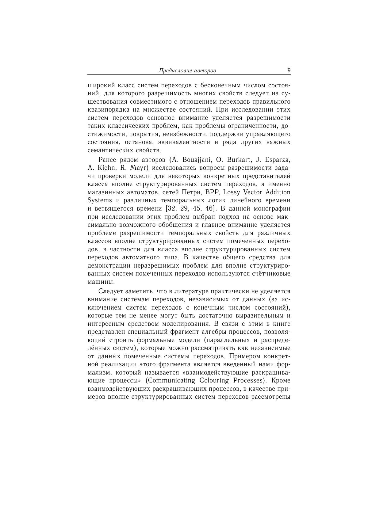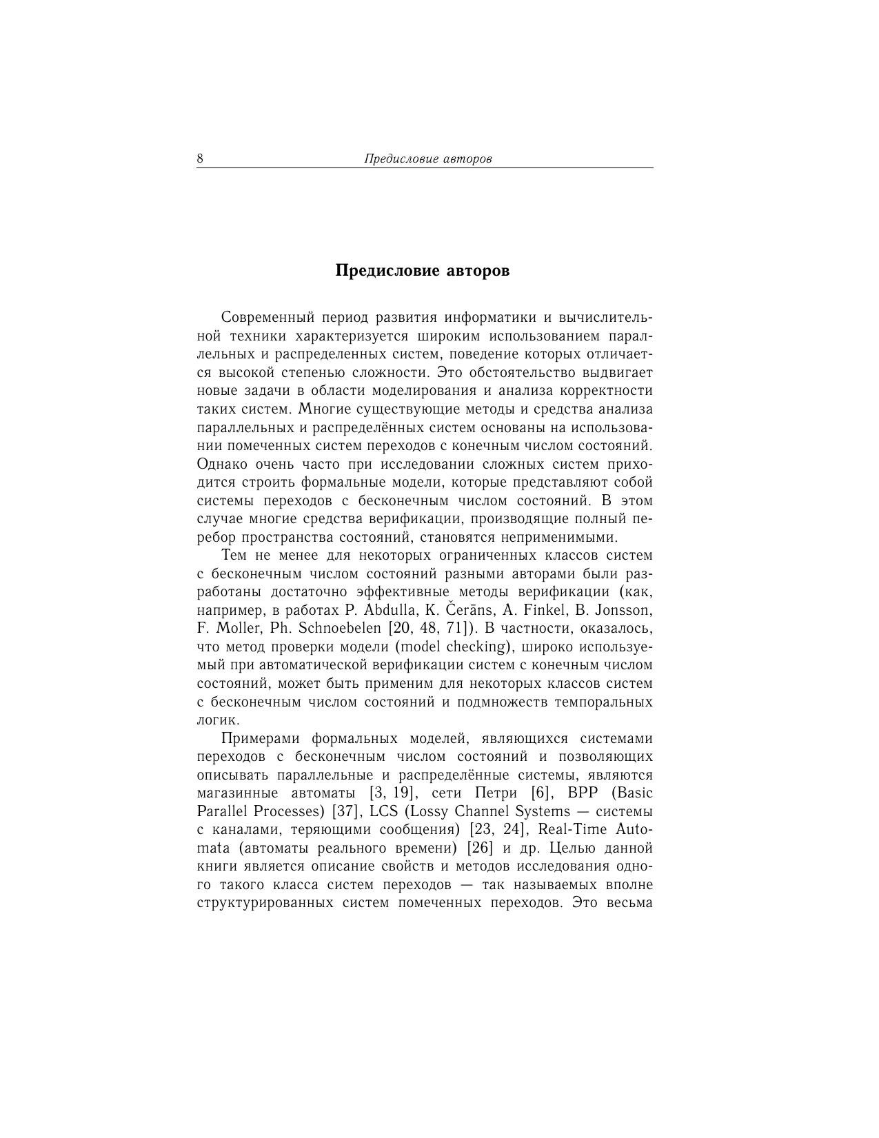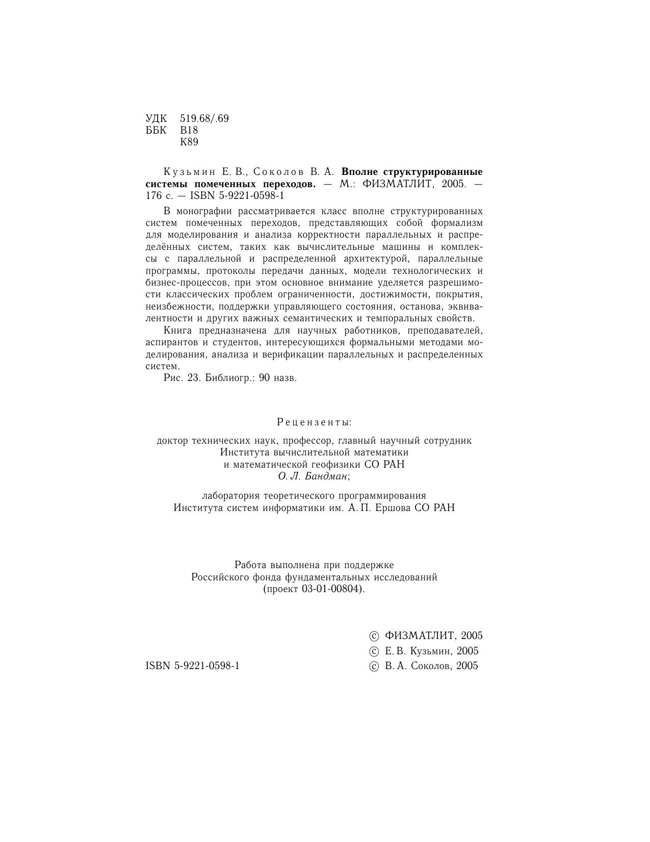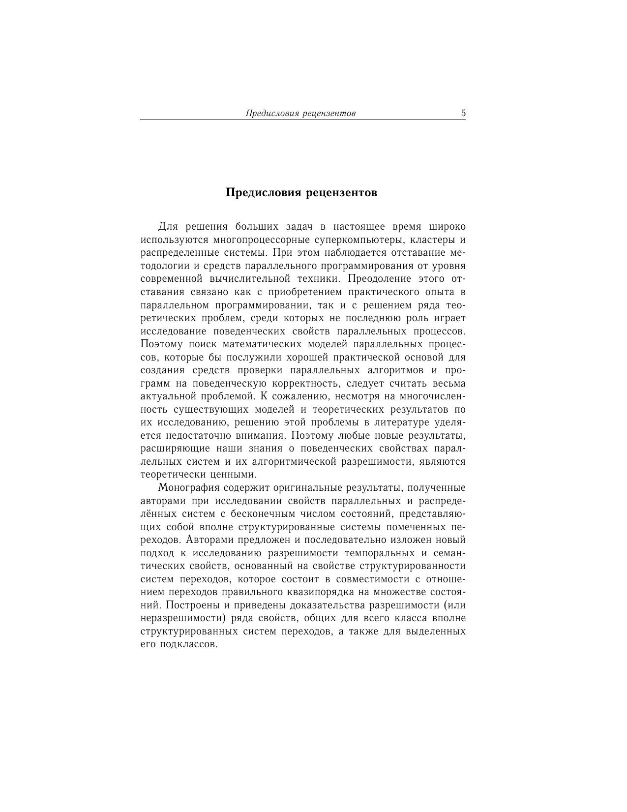 В монографии рассматривается класс вполне структурированных систем помеченных переходов, представляющих собой формализм для моделирования и анализа корректности параллельных и распределённых систем, таких как вычислительные машины и комплексы с параллельной и распределенной архитектурой, параллельные программы, протоколы передачи данных, модели технологических и бизнес-процессов, при этом основное внимание уделяется разрешимости классических проблем ограниченности, достижимости, покрытия, неизбежности, поддержки управляющего состояния, останова, эквивалентности и других важных семантических и темпоральных свойств. Книга предназначена для научных работников, преподавателей, аспирантов и студентов, интересующихся формальными методами моделирования, анализа и верификации параллельных и распределенных систем.