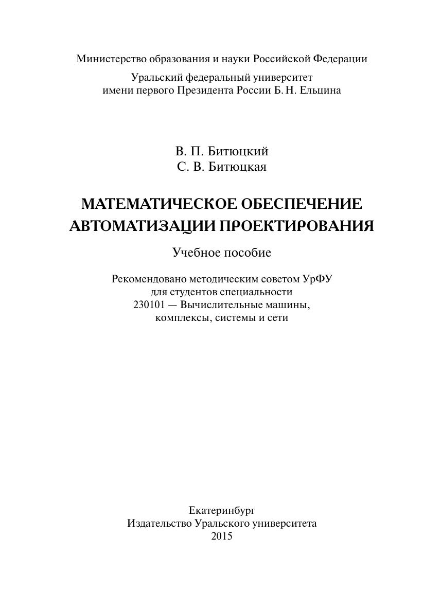 Математическое обеспечение автоматизации проектирования: учебное пособие