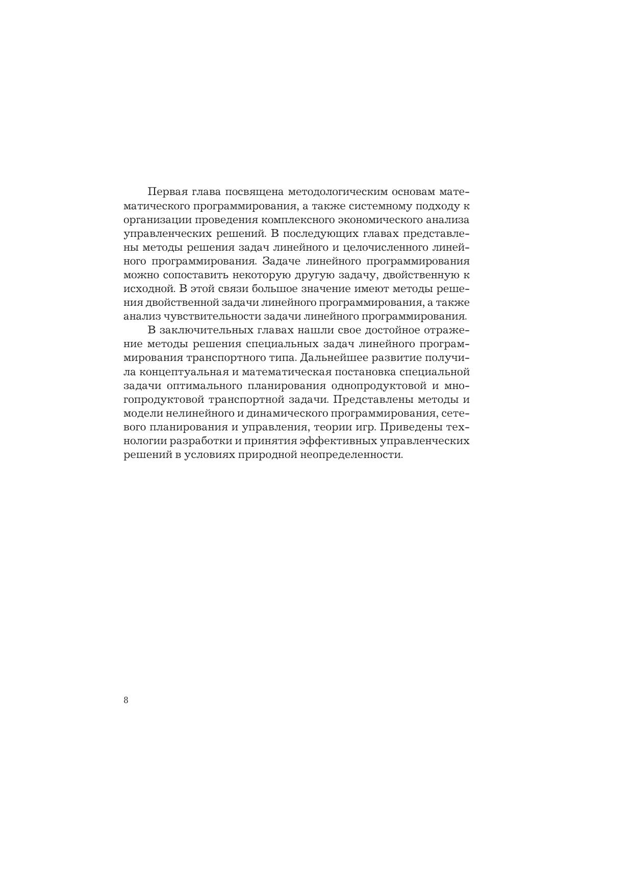 В учебнике рассматриваются теоретические основы математического программирования с позиций методологии системного анализа. Представлены методы решения задач линейного, нелинейного, динамического программирования и некоторых специальных задач линейного программирования. Рассматриваются проблемы применения известных методов и моделей теории игр в разработке рациональных управленческих решений в неопределенных условиях. В приложениях представлены задачи для самостоятельного решения.