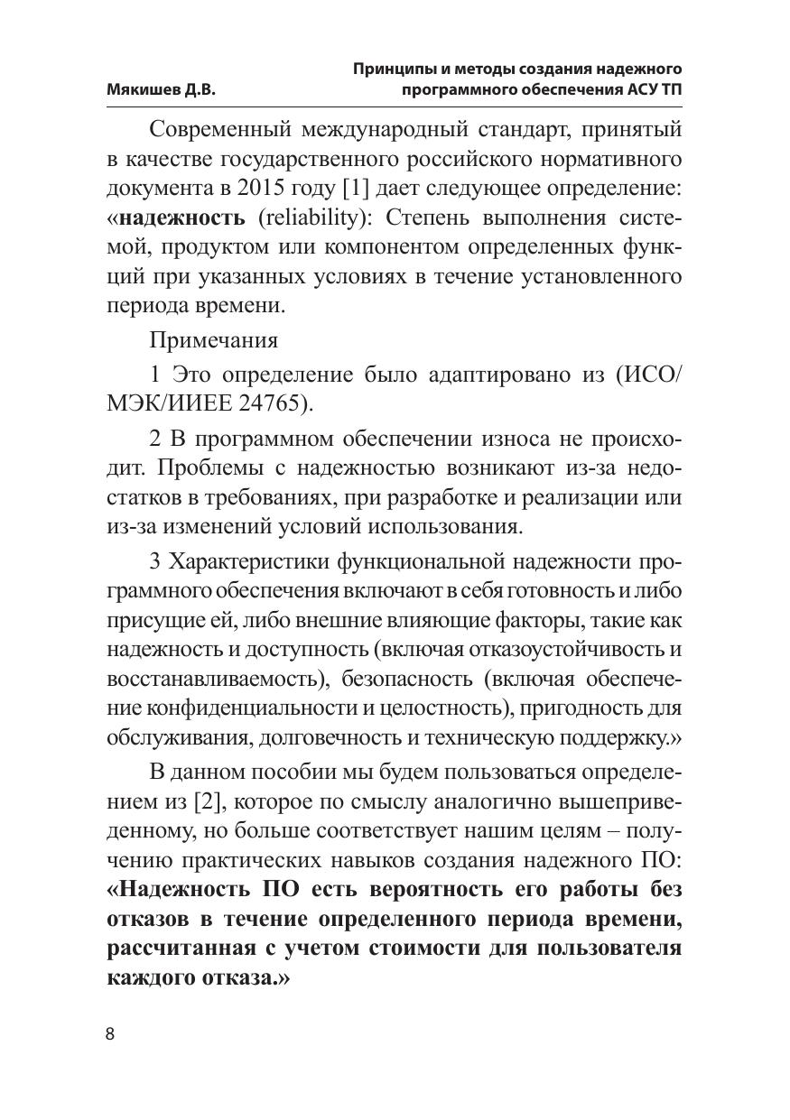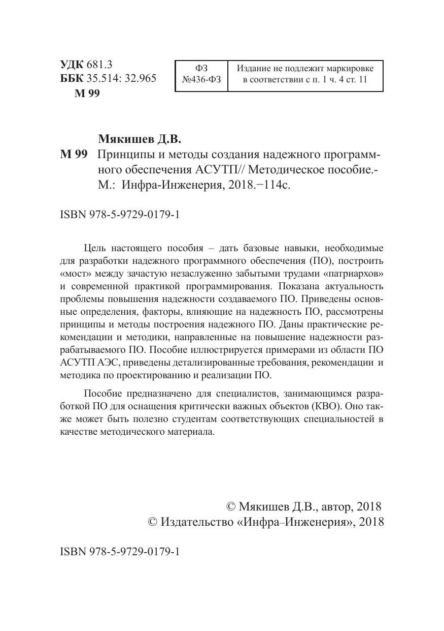 Цель настоящего пособия – дать базовые навыки, необходимые для разработки надежного программного обеспечения (ПО), построить «мост» между зачастую незаслуженно забытыми трудами «патриархов» и современной практикой программирования. Показана актуальность проблемы повышения надежности создаваемого ПО. Приведены основные определения, факторы, влияющие на надежность ПО, рассмотрены принципы и методы построения надежного ПО. Даны практические рекомендации и методики, направленные на повышение надежности разрабатываемого ПО. Пособие иллюстрируется примерами из области ПО АСУТП АЭС, приведены детализированные требования, рекомендации и методика по проектированию и реализации ПО.