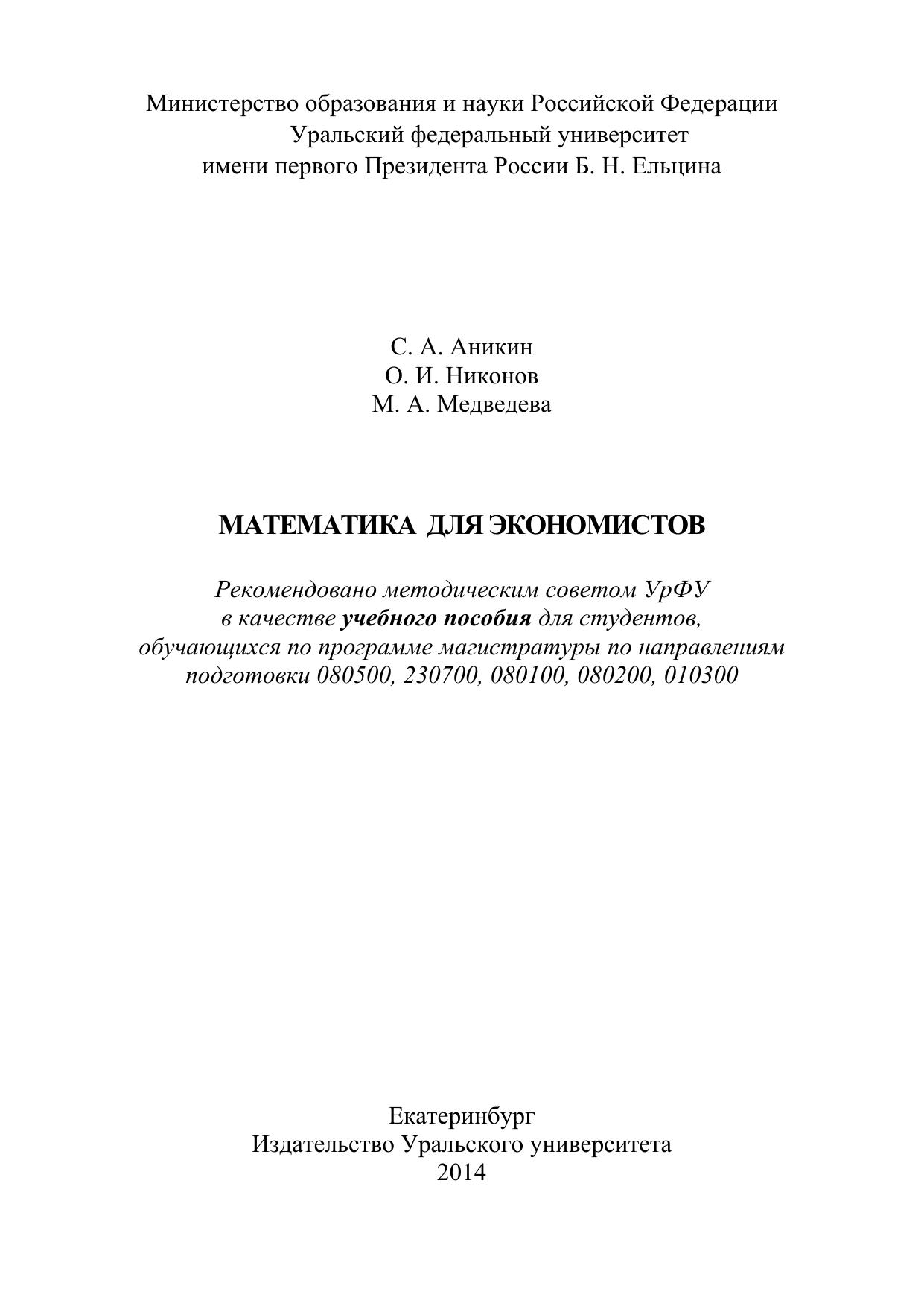 Математика для экономистов: учебное пособие