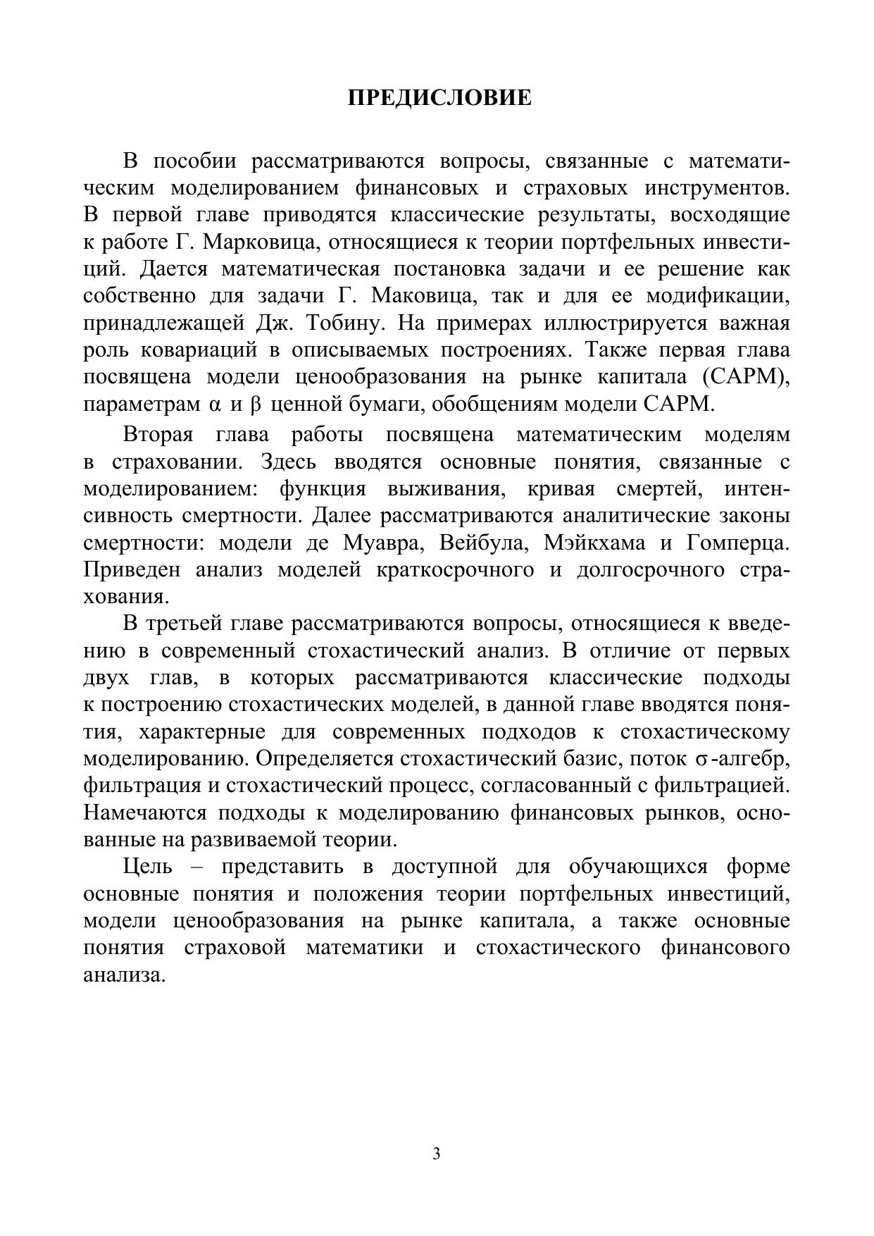 В пособии рассматриваются математические модели в финансах и страховании. Первые две главы посвящены изложению классических подходов к моделированию ситуаций и процессов в названных областях, в третьей главе приводится вводное описание подхода, характерного для современной математической и экономико-математической литературы. Рекомендовано для студентов, обучающихся по направлениям 080500 «Бизнес-информатика», 230700 «Прикладная информатика», 080100 «Экономика», 080200 «Менеджмент», 010300 «Фундаментальная информатика и информационные технологии».