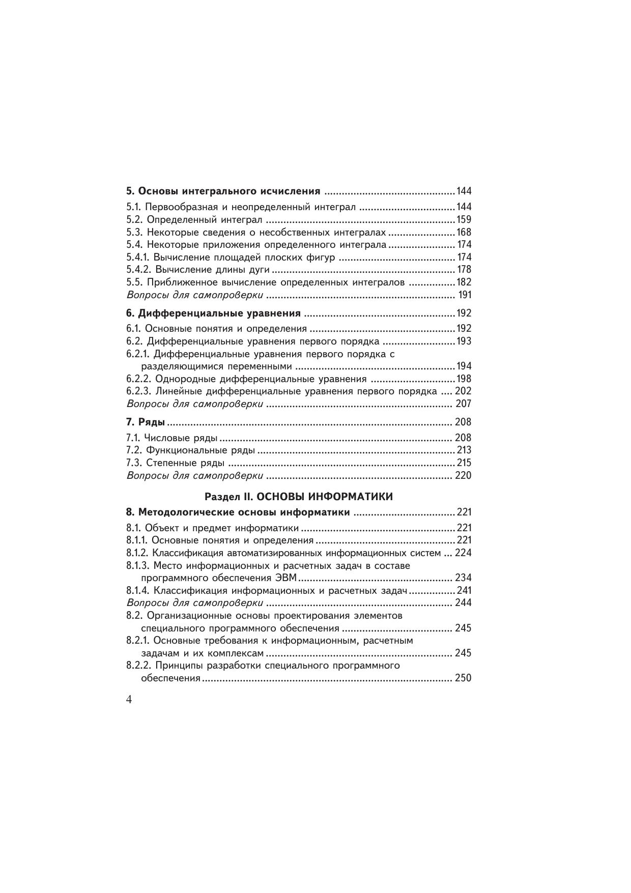 Учебное пособие содержит основы высшей математики и информатики. В него включены прикладные наработки авторов, примеры использования классических методов и заданий для самостоятельной работы обучаемых, вопросы для самопроверки. Материал учебника может послужить базой применения формальных методов для решения практических задач.