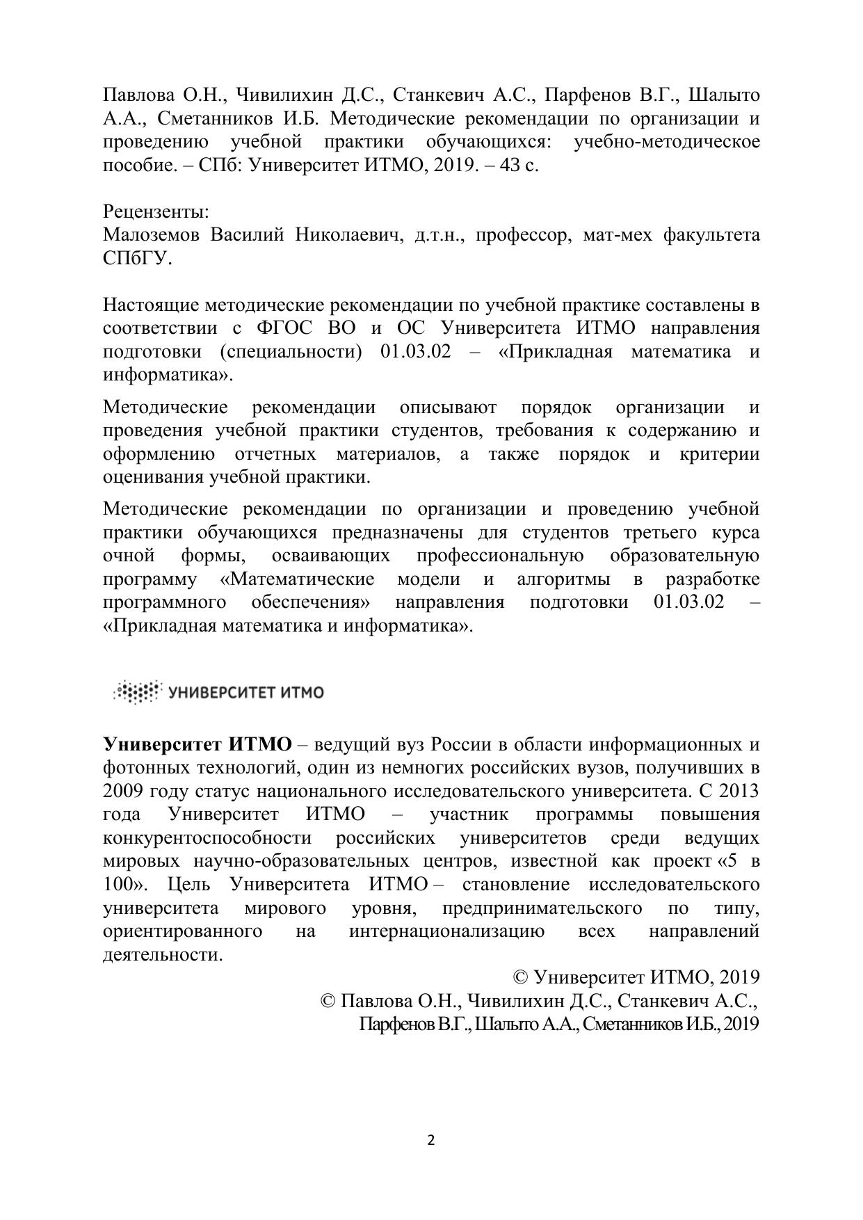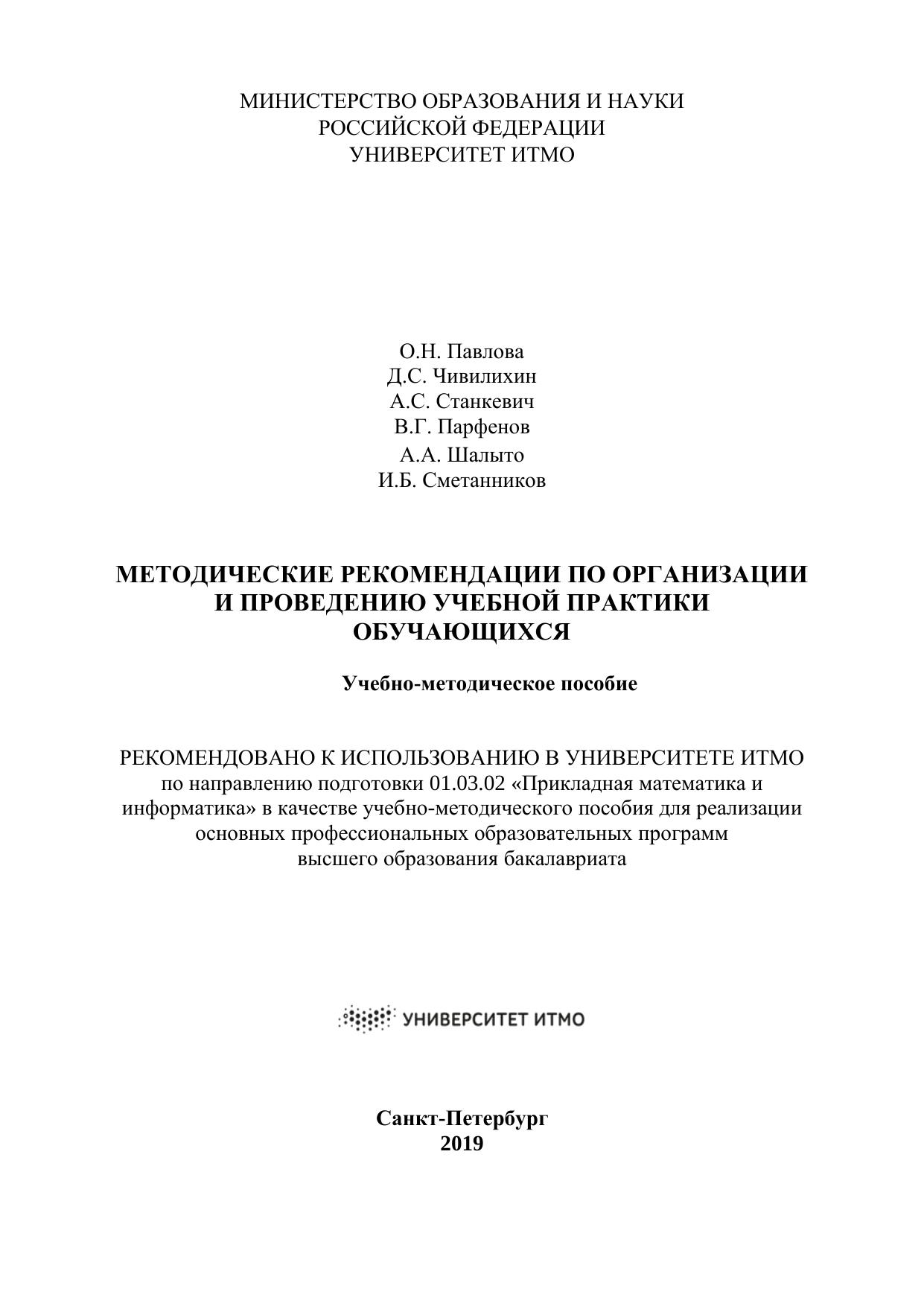 Настоящие методические рекомендации по учебной практике составлены в соответствии с ФГОС ВО и ОС Университета ИТМО направления подготовки (специальности) 01.03.02 – «Прикладная математика и информатика».