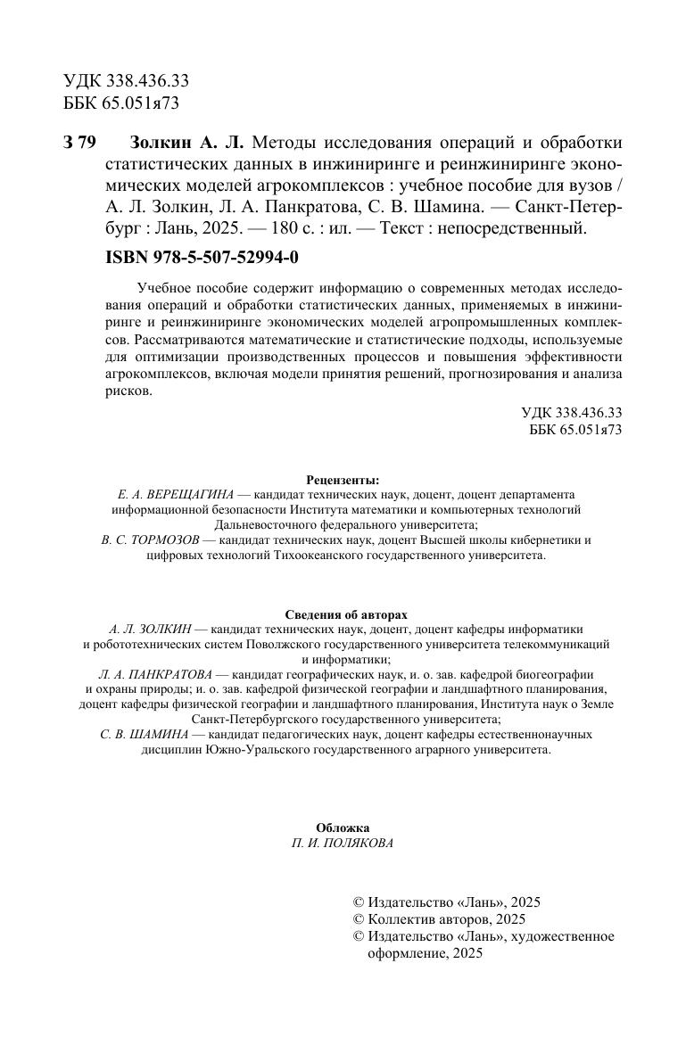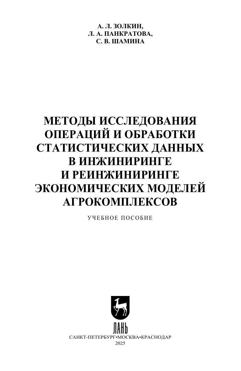 Учебное пособие содержит информацию о современных методах исследования операций и обработки статистических данных, применяемых в инжиниринге и реинжиниринге экономических моделей агропромышленных комплексов. Рассматриваются математические и статистические подходы, используемые для оптимизации производственных процессов и повышения эффективности агрокомплексов, включая модели принятия решений, прогнозирования и анализа рисков.
