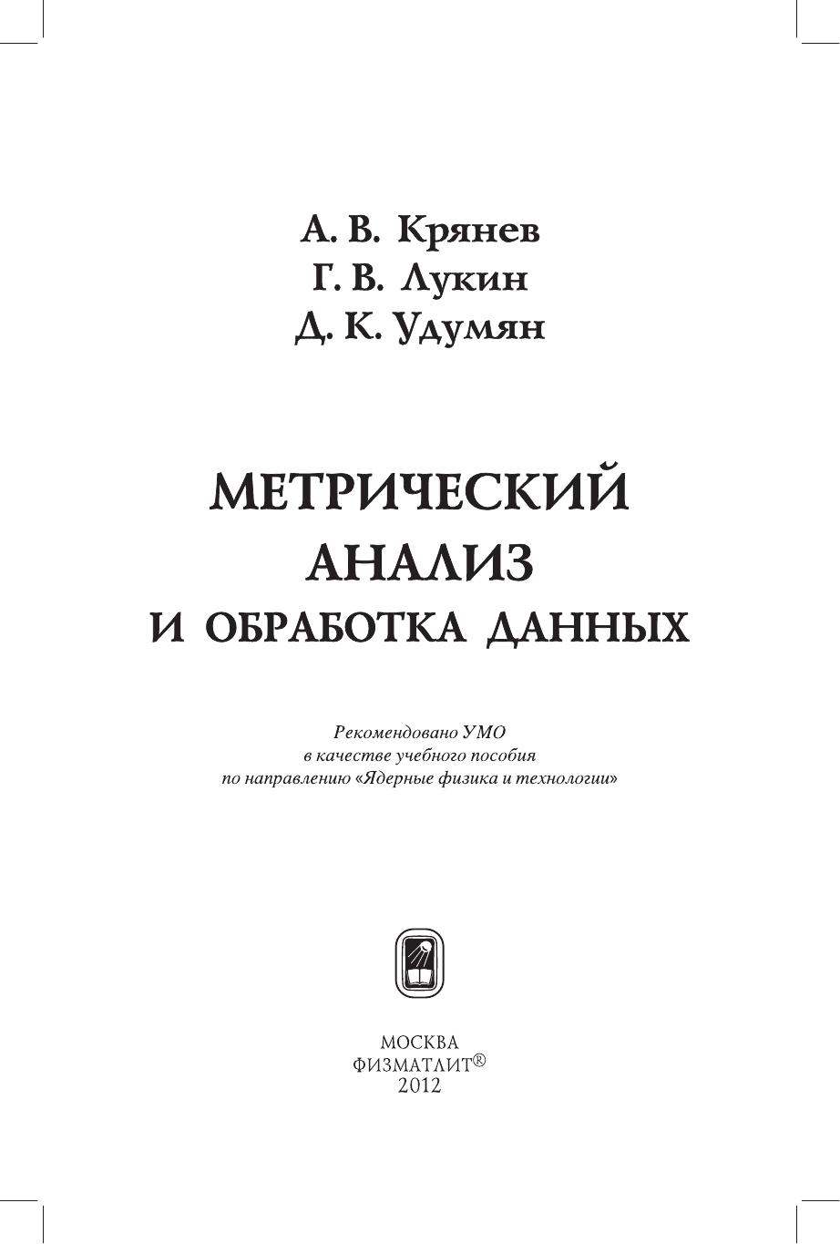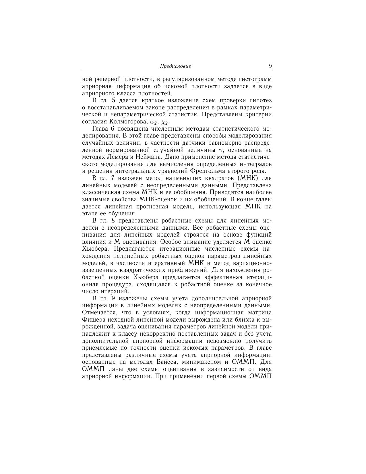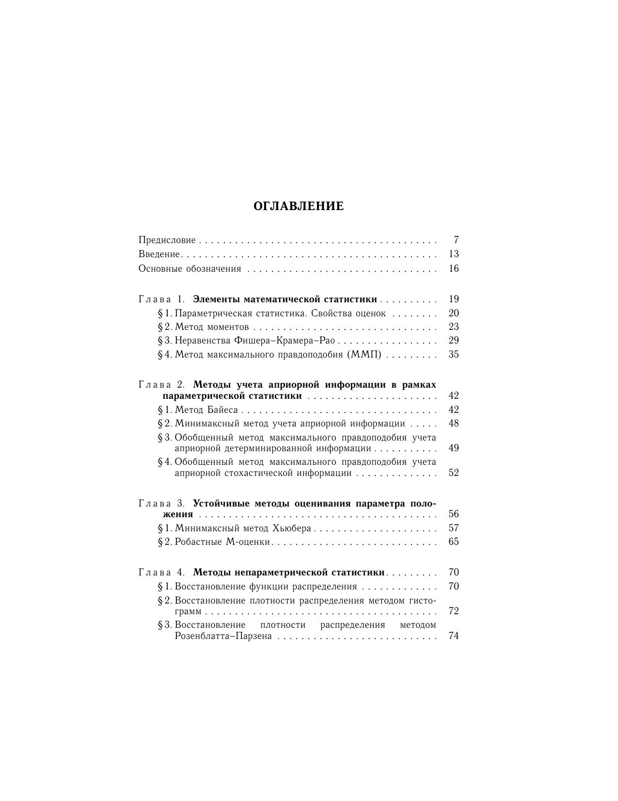Основная цель книги – ознакомить читателя с наиболее эффективными и апробированными классическими и новыми стохастическими и детерминированными методами оценки и прогнозирования, научить использовать эти методы при решении конкретных задач обработки данных. В книге изложены основные понятия параметрической и непараметрической статистики, а также некоторые новые методы робастного оценивания, учета априорной информации и прогнозирования, включая алгоритмы их численной реализации. Представлены основы нового направления обработки данных - метрического анализа, позволяющего решать задачи интерполяции, восстановления и прогнозирования функций одной и многих переменных на основе эффективного использования информации стохастического и детерминированного характеров об исследуемой функциональной зависимости. Предполагается, что читатель предварительно освоил курс теории вероятностей и математической статистики на базе, например, книги В.С. Пугачева «Теория вероятностей и математическая статистика». Предназначено преподавателям, научным работникам, аспирантам, студентам старших курсов различных специальностей, использующих математические методы обработки данных.