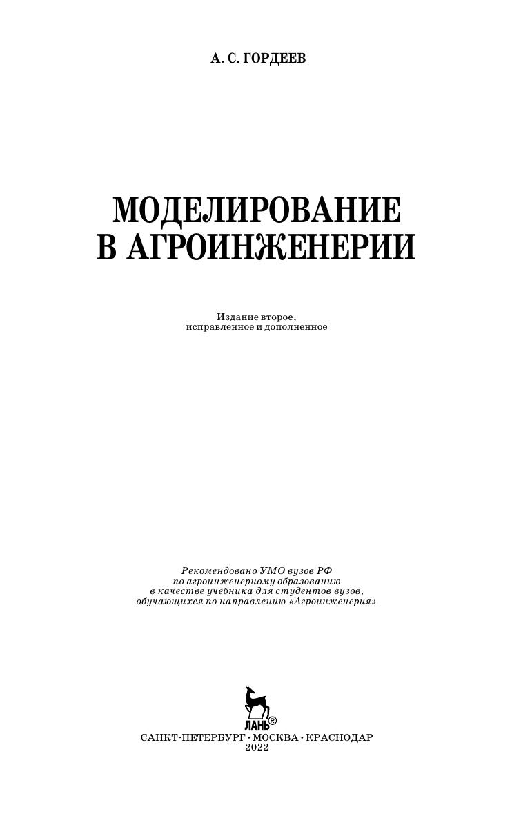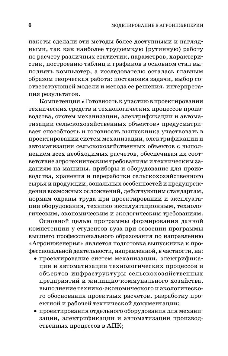 В учебнике рассмотрены основы создания моделей и моделирования, методы имитационного (компьютерного) моделирования на базе современных средств компьютерного моделирования Мatlab (аналитические и динамические модели) и АnyLogic (дискретно-событийные, системно-динамические и агентные модели). Приведены основы планирования и обработки результатов моделирования. Приводится широкий круг примеров моделирования на компьютере с пояснениями составления имитационных моделей отдельных операций сельскохозяйственного производства, проведения имитационного эксперимента и представления результатов. Предназначено для обучающихся по направлению «Агроинженерия» — бакалавров, магистрантов и аспирантов, а также специалистов, интересующихся имитационным моделированием реальных процессов и производств в сельском хозяйстве.