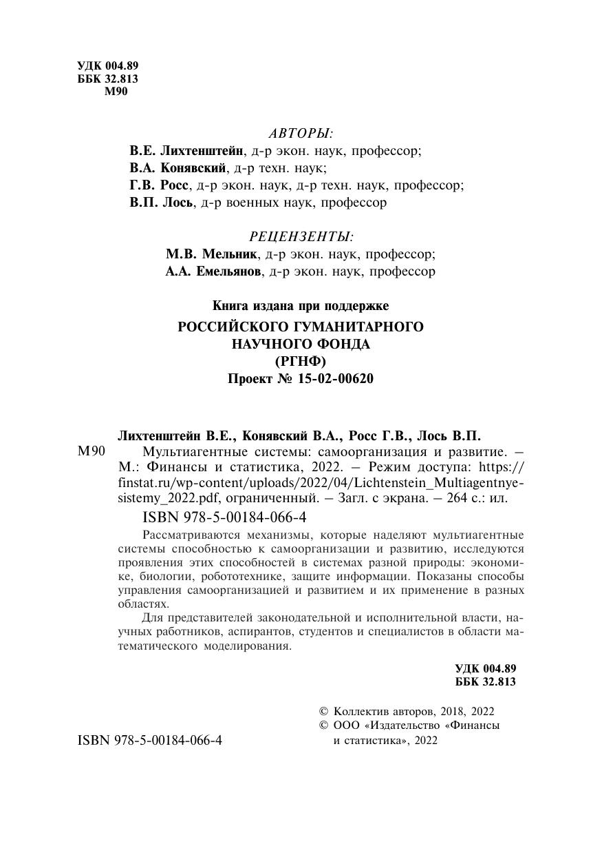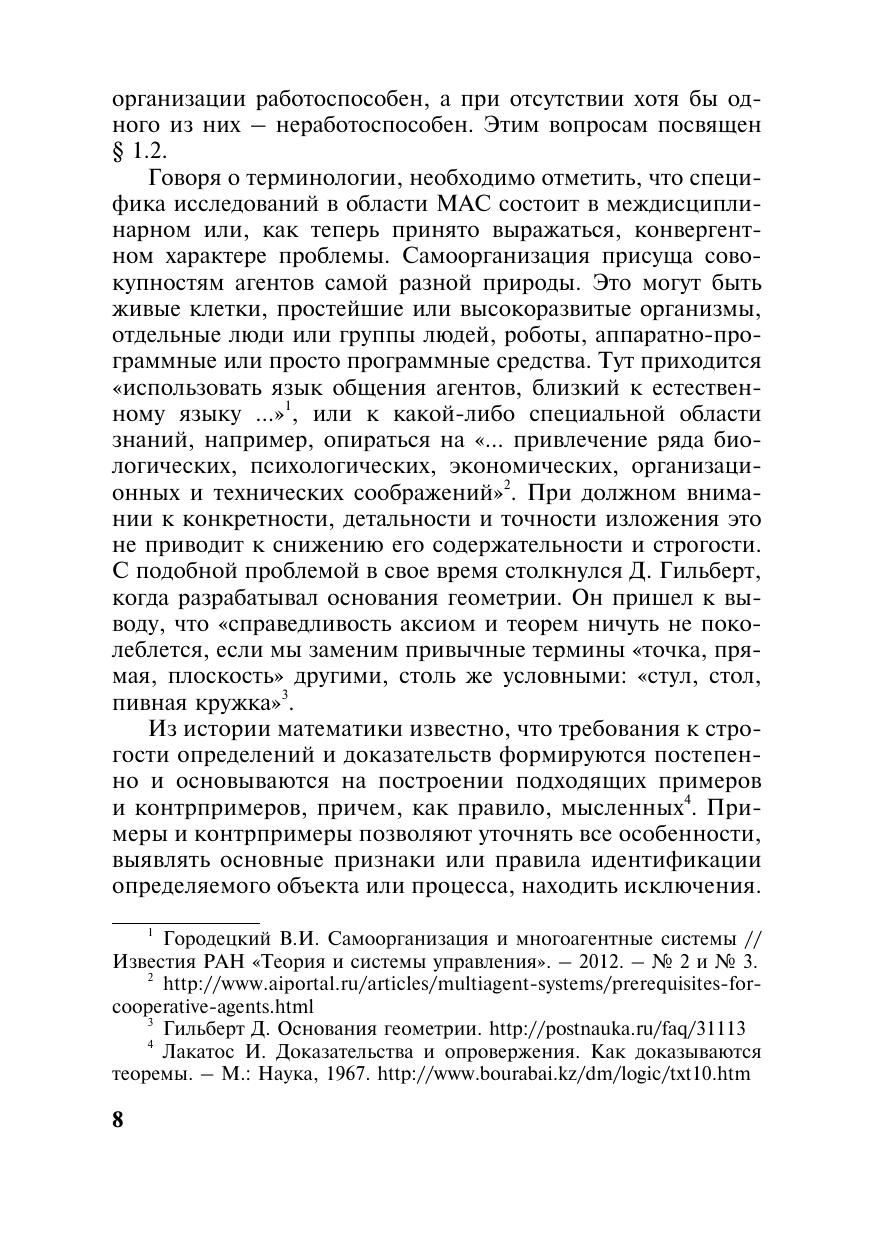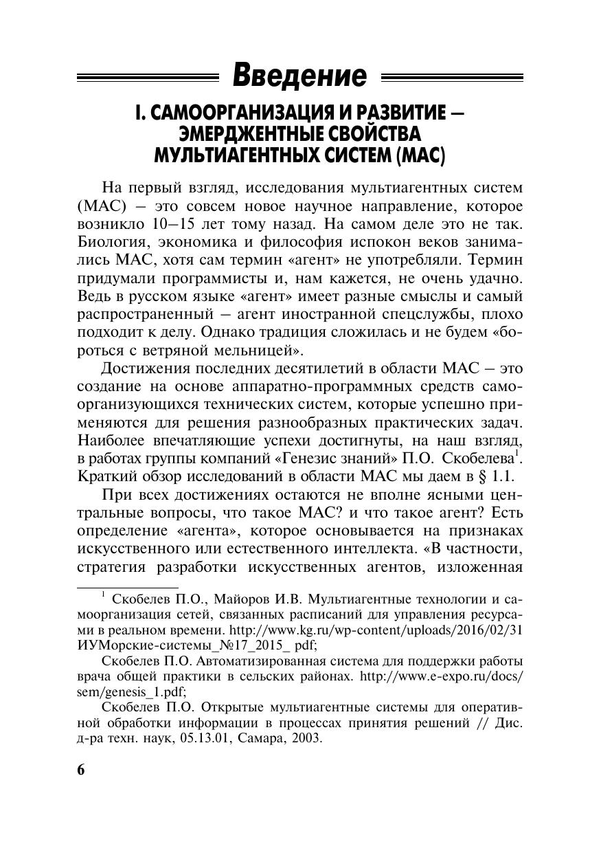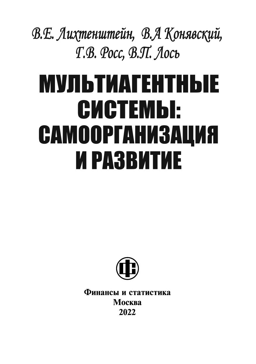 Рассматриваются механизмы, которые наделяют мультиагентные системы способностью к самоорганизации и развитию, исследуются проявления этих способностей в системах разной природы: экономике, биологии, робототехнике, защите информации. Показаны способы управления самоорганизацией и развитием и их применение в разных областях.Для представителей законодательной и исполнительной власти, научных работников, аспирантов, студентов и специалистов в области математического моделирования.