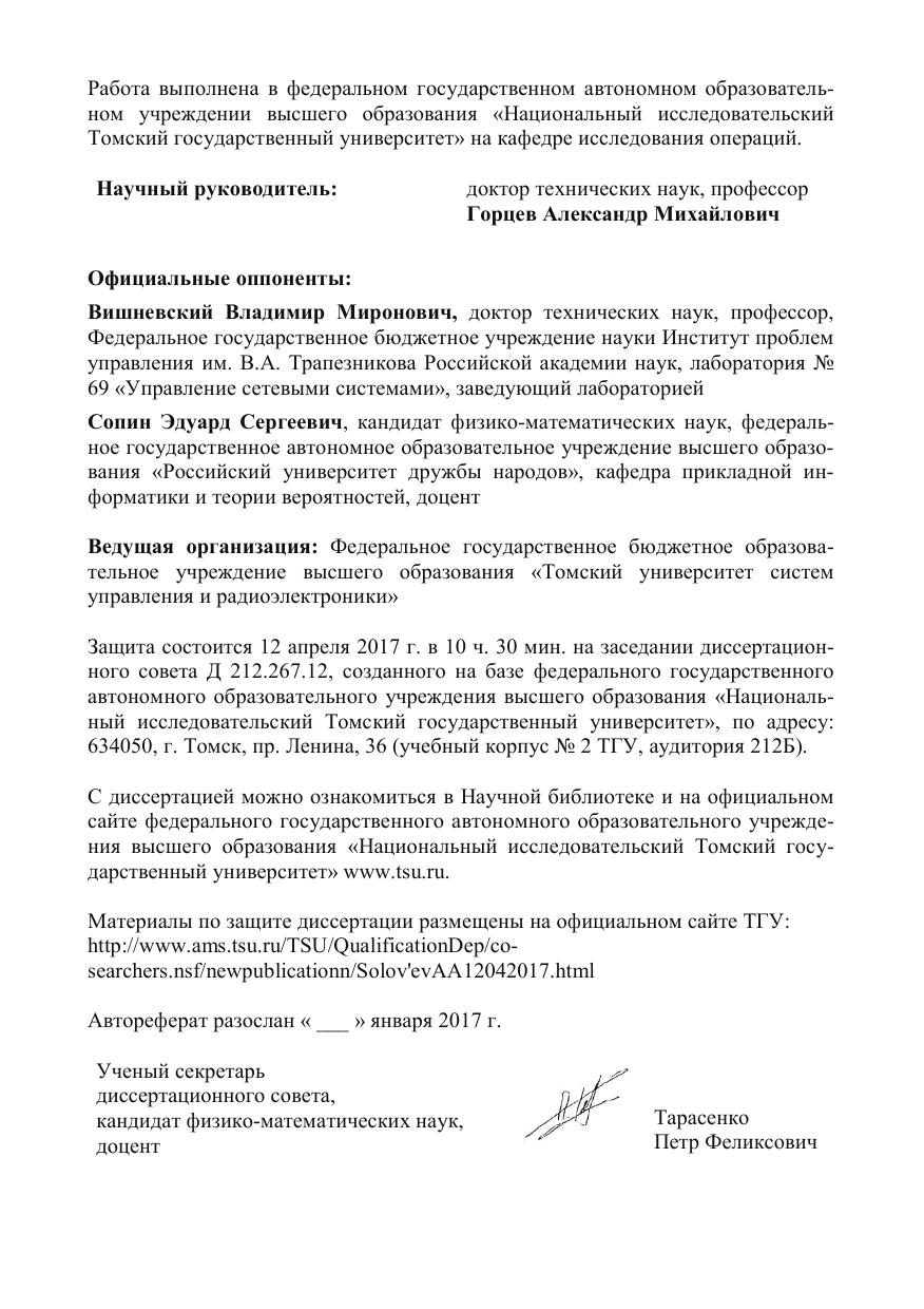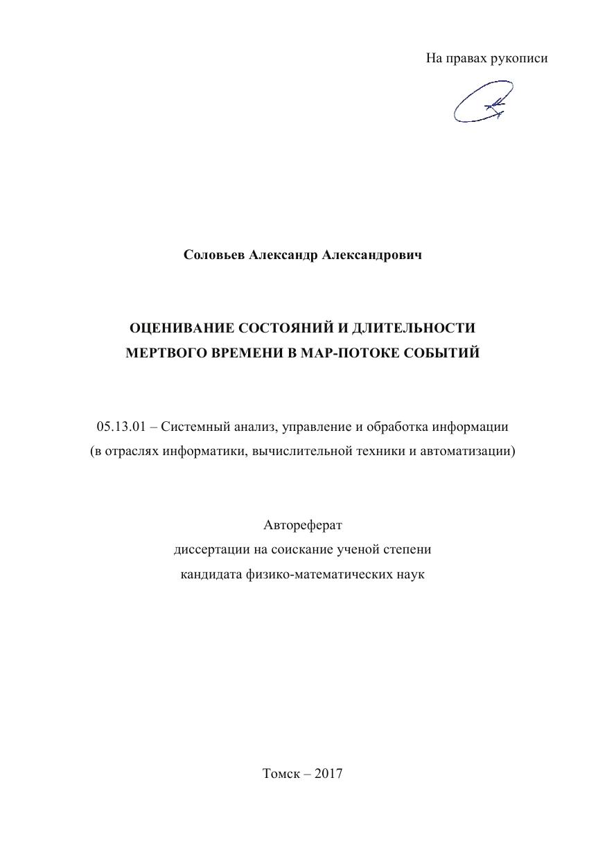Автореферат диссертации на соискание ученой степени кандидата физико-математических наук