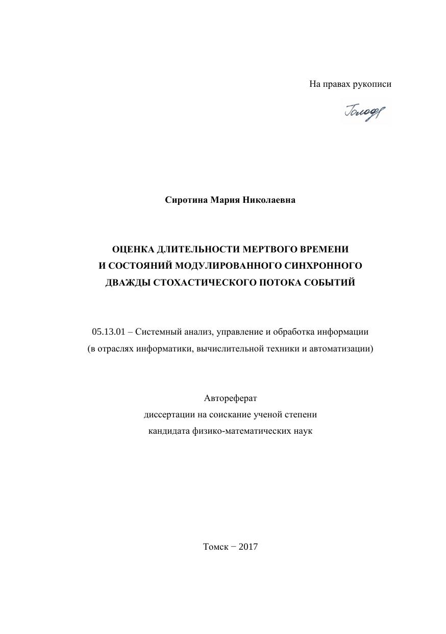 Автореферат диссертации на соискание ученой степени кандидата физико-математических наук