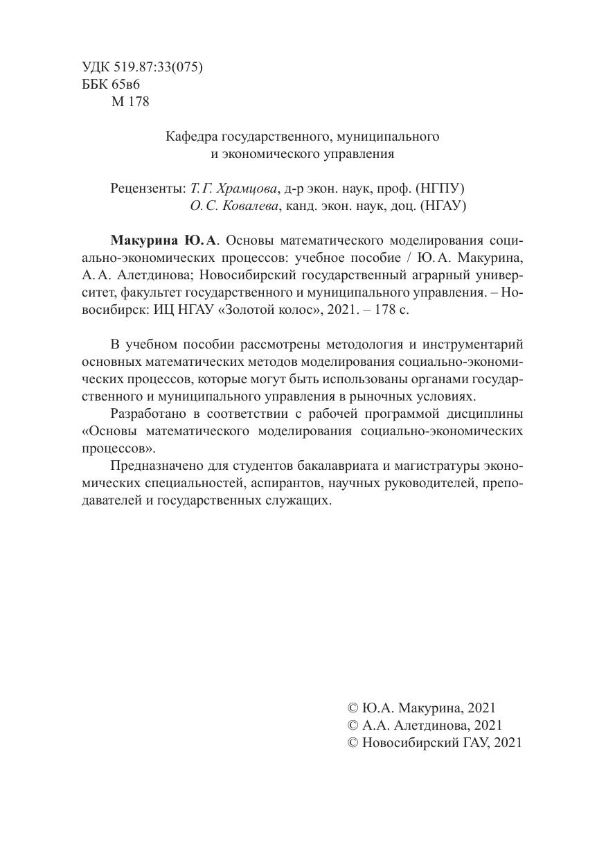 В учебном пособии рассмотрены методология и инструментарий основных математических методов моделирования социально-экономических процессов, которые могут быть использованы органами государственного и муниципального управления в рыночных условиях. Разработано в соответствии с рабочей программой дисциплины «Основы математического моделирования социально-экономических процессов». Предназначено для студентов бакалавриата и магистратуры экономических специальностей, аспирантов, научных руководителей, преподавателей и государственных служащих.