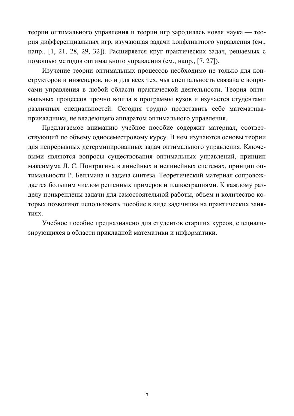 В учебном пособии излагаются методологические основы теории оптимальных процессов, вопросы управляемости, достижимости, теоремы существования, принцип максимума Л. С. Понтрягина в линейных и нелинейных задачах, принцип оптимальности Р. Беллмана и задача синтеза. Теоретический материал подкрепляется многочисленными примерами и иллюстрациями. К каждому разделу приводятся задачи для самостоятельного решения.