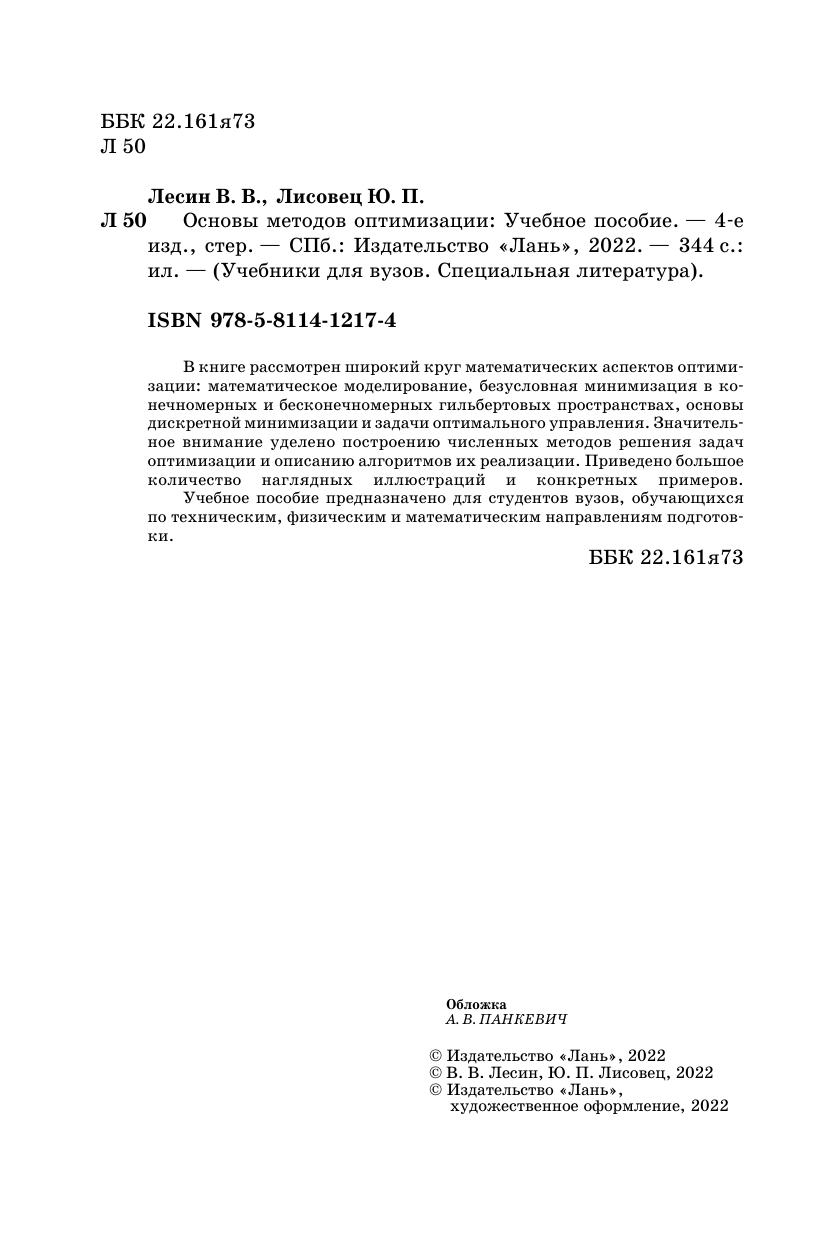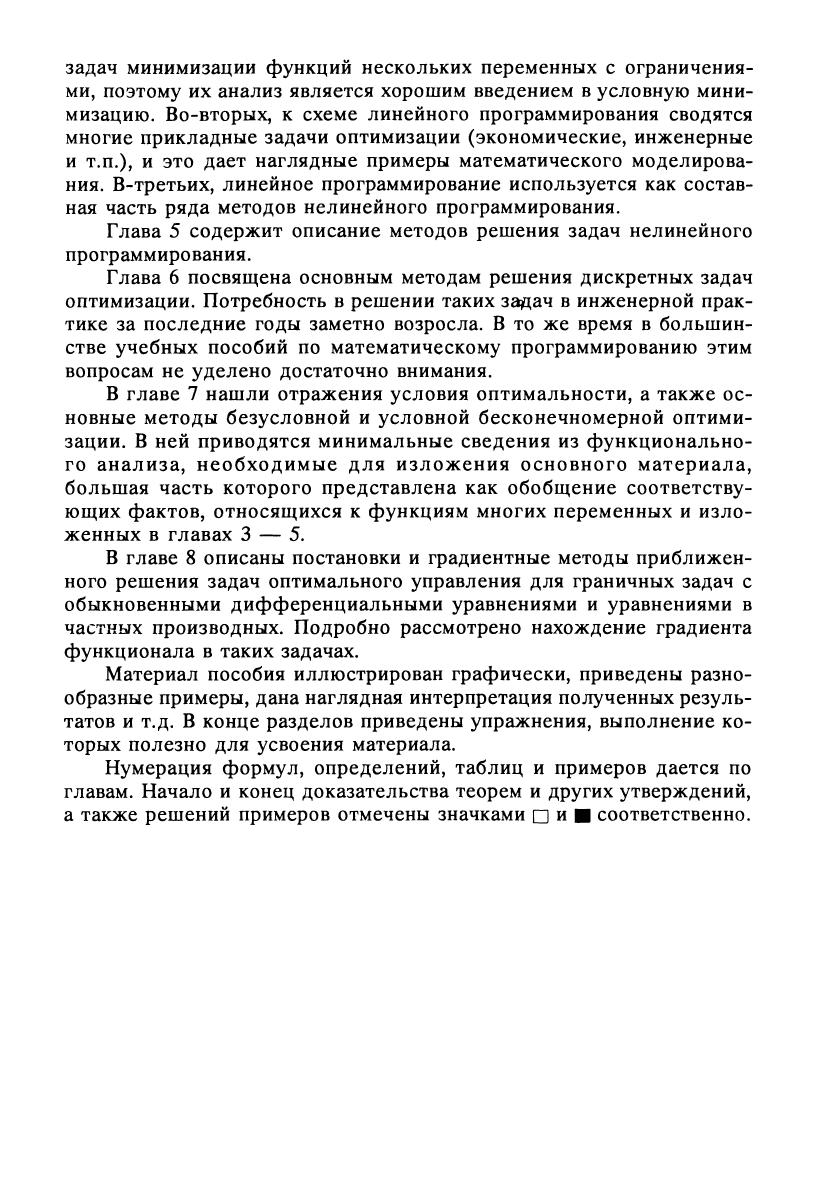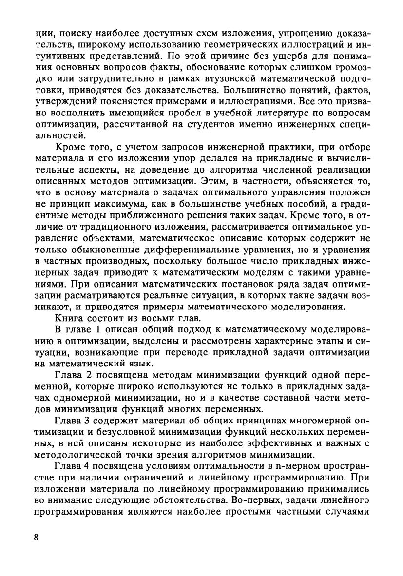 В книге рассмотрен широкий круг математических аспектов оптимизации: математическое моделирование, безусловная минимизация в конечномерных и бесконечномерных гильбертовых пространствах, основы дискретной минимизации и задачи оптимального управления. Значительное внимание уделено построению численных методов решения задач оптимизации и описанию алгоритмов их реализации. Приведено большое количество наглядных иллюстраций и конкретных примеров. Учебное пособие предназначено для студентов вузов, обучающихся по техническим, физическим и математическим направлениям подготовки.